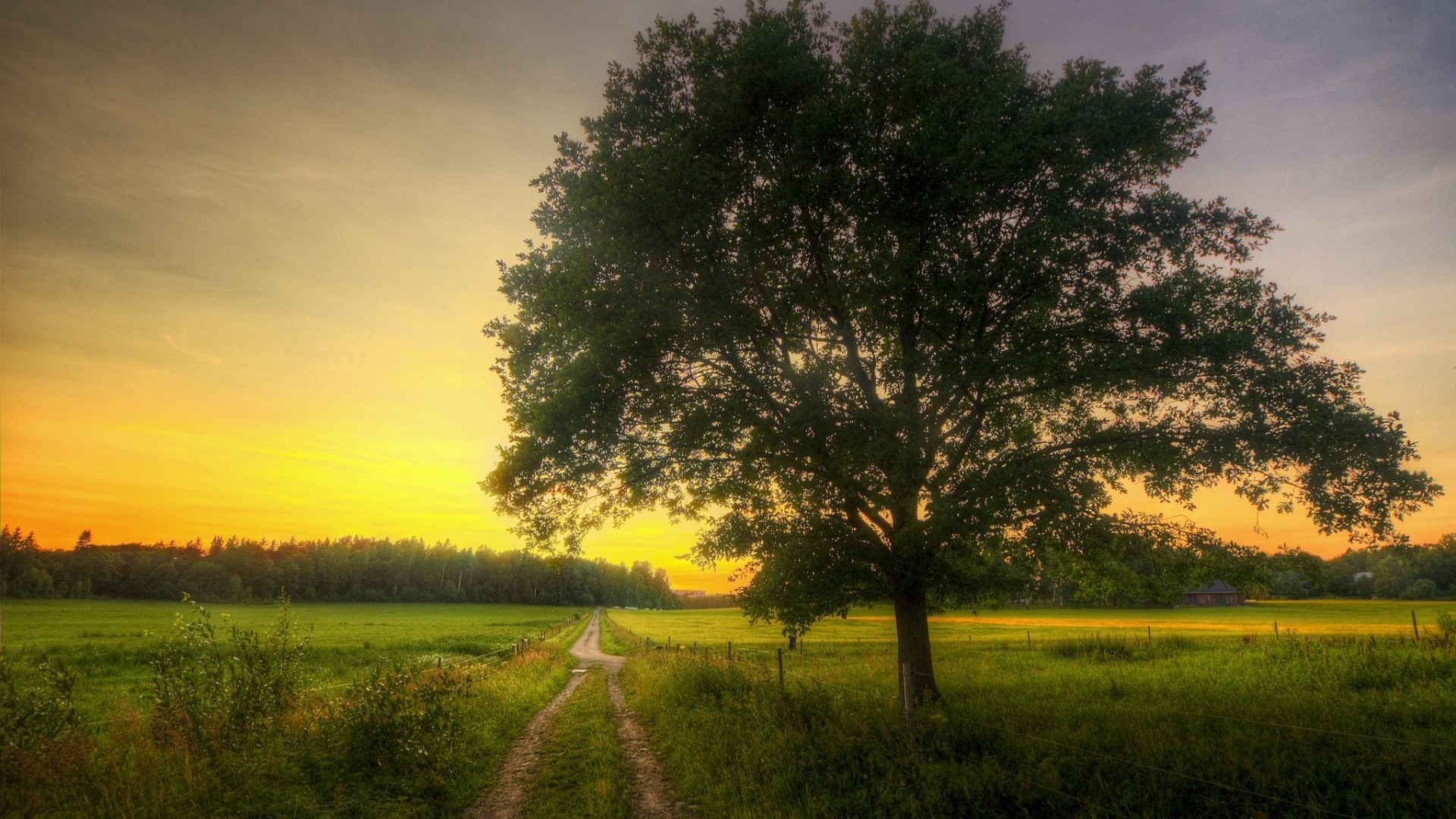 1 张 高清晰晚霞下的树壁纸 : 959226
