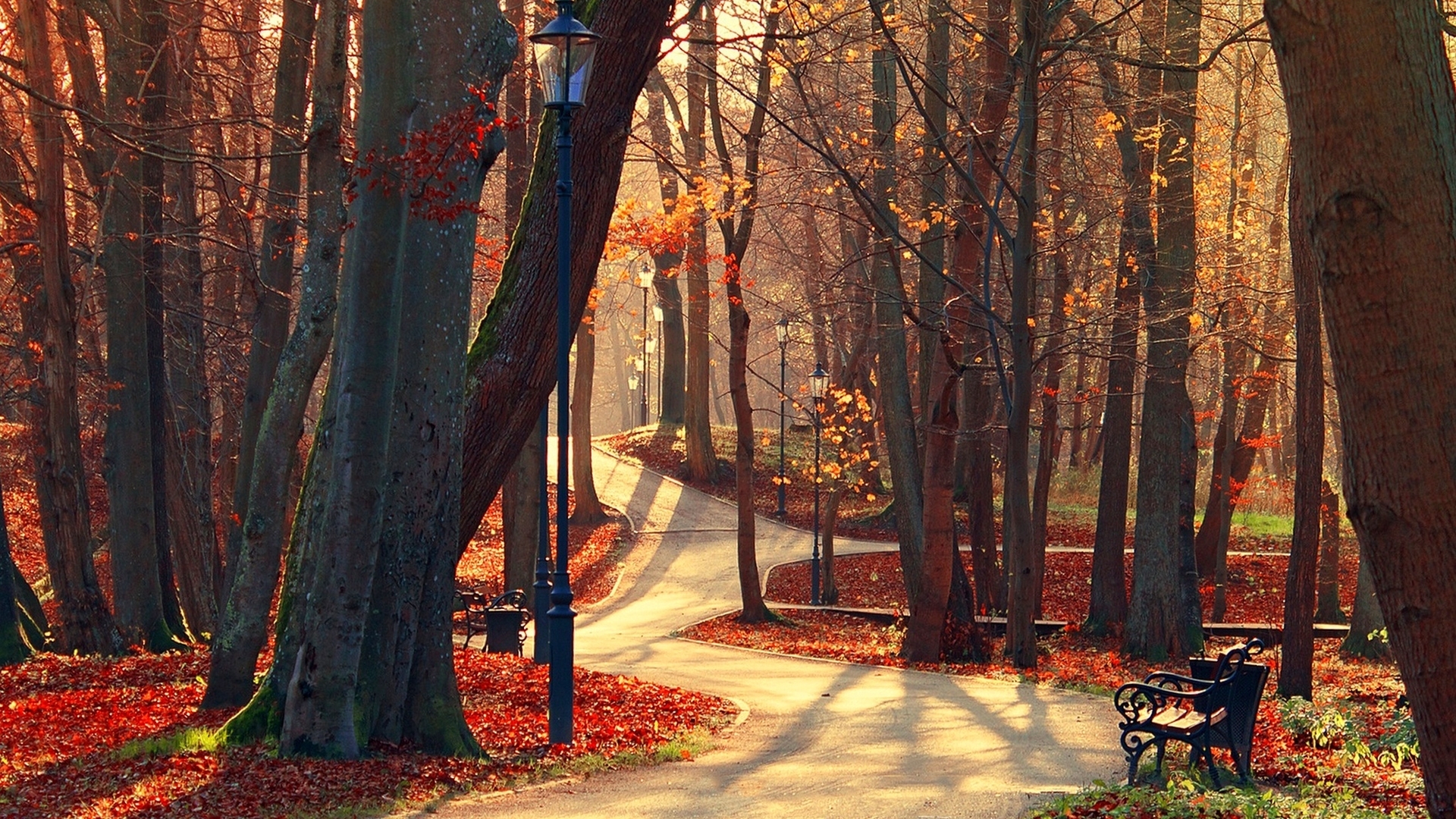 2 张 高清晰秋季森林公园-林荫大道自然美景壁纸下载 : 941310