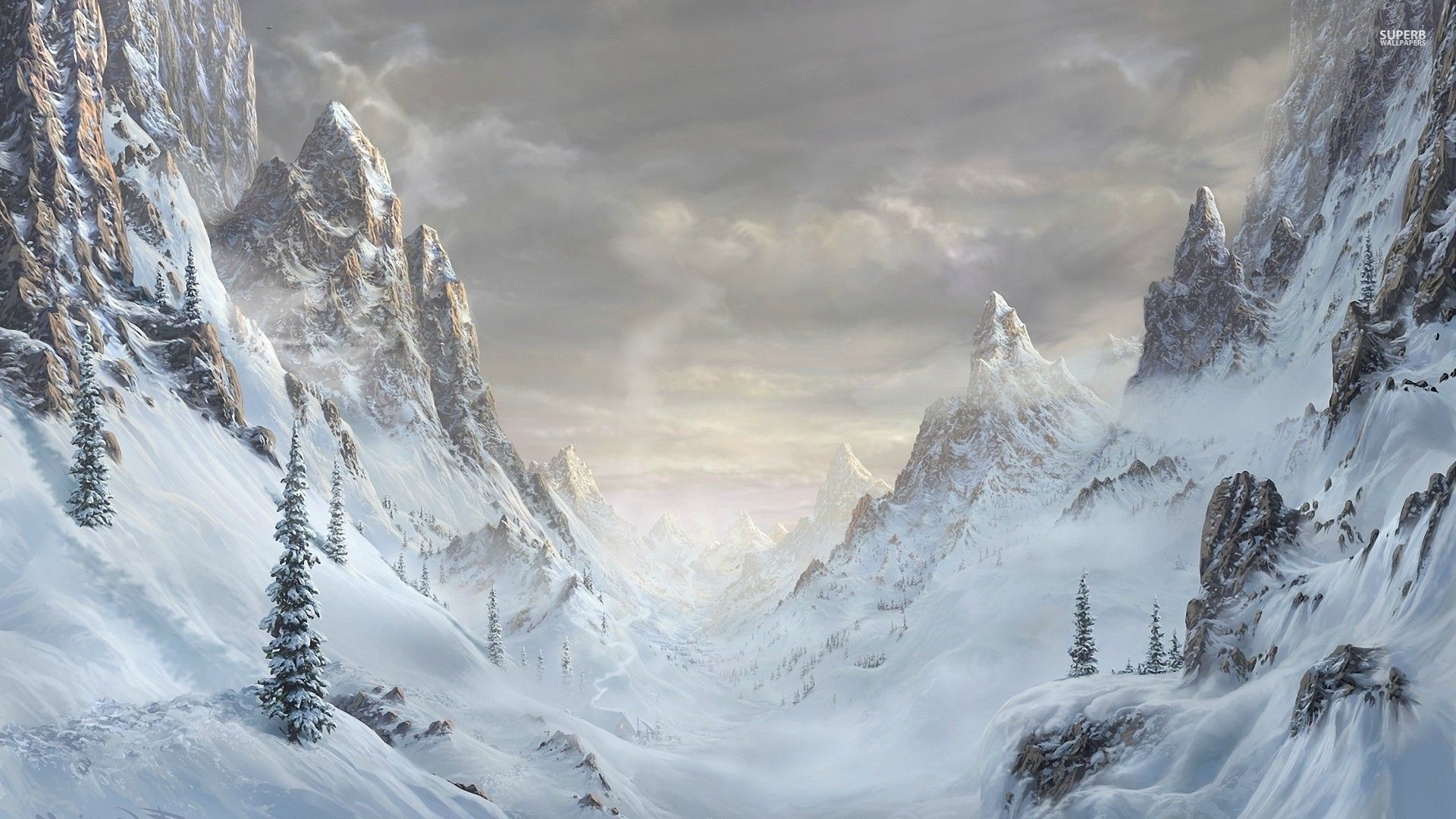 1 张 高清晰白色乌云下的雪山壁纸 : 947286
