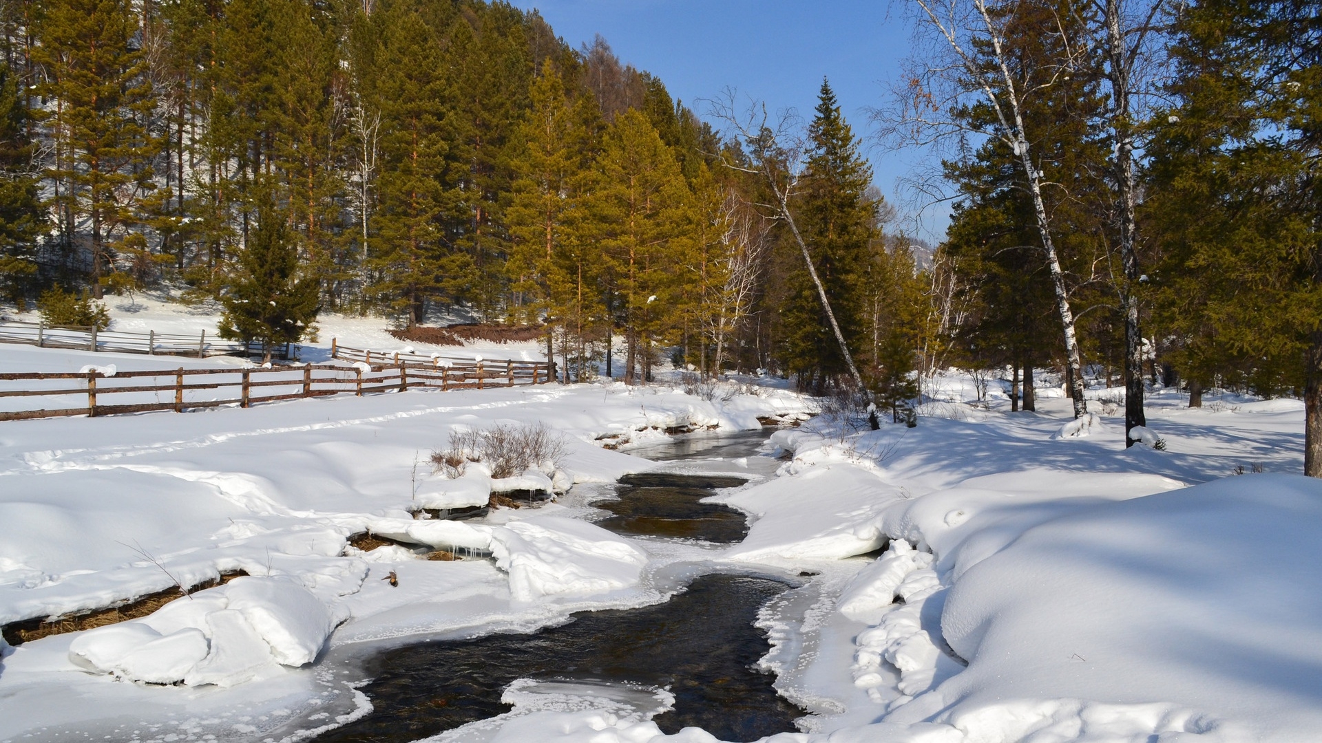 1 张 高清晰冬季森林河壁纸 : 958247