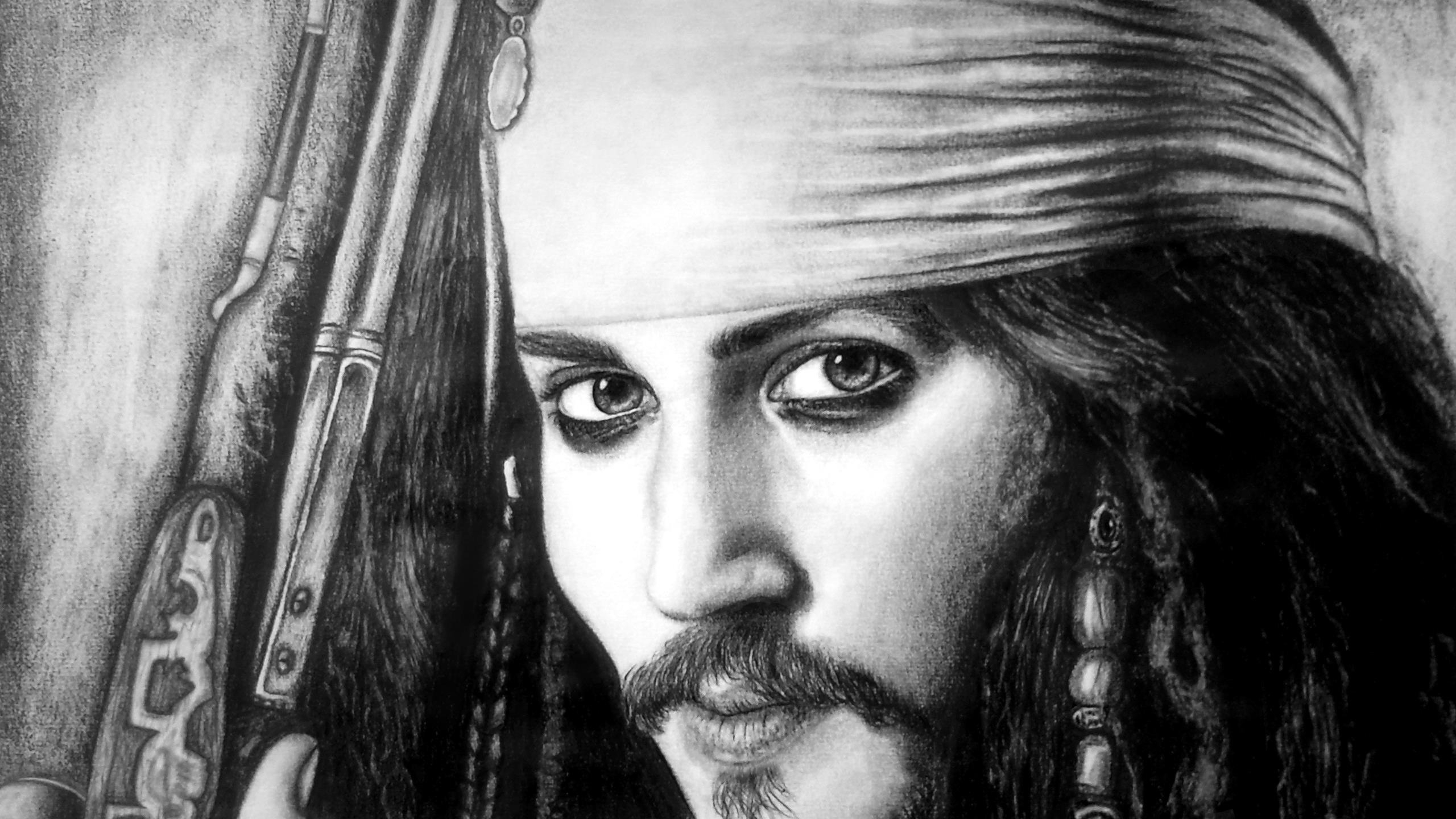 1 张 杰克・斯派洛-海盗船长黑白人像 : 943932
