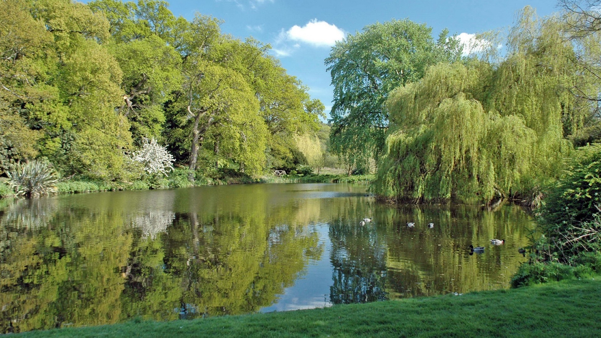 1 张 高清晰绿树小河壁纸 : 947645