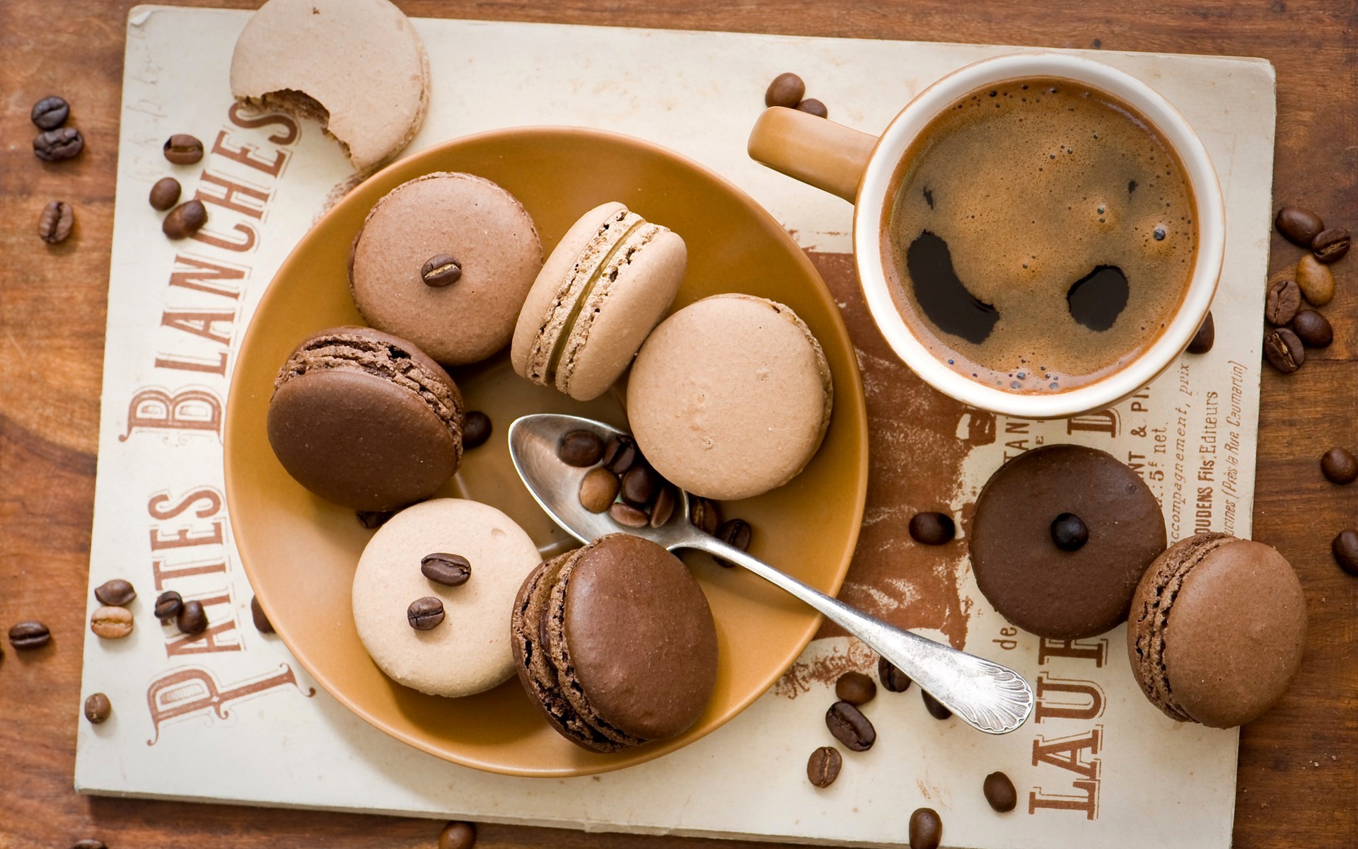 6 张 高清晰唯美咖啡味马卡龙饼干桌面壁纸下载 : 951301