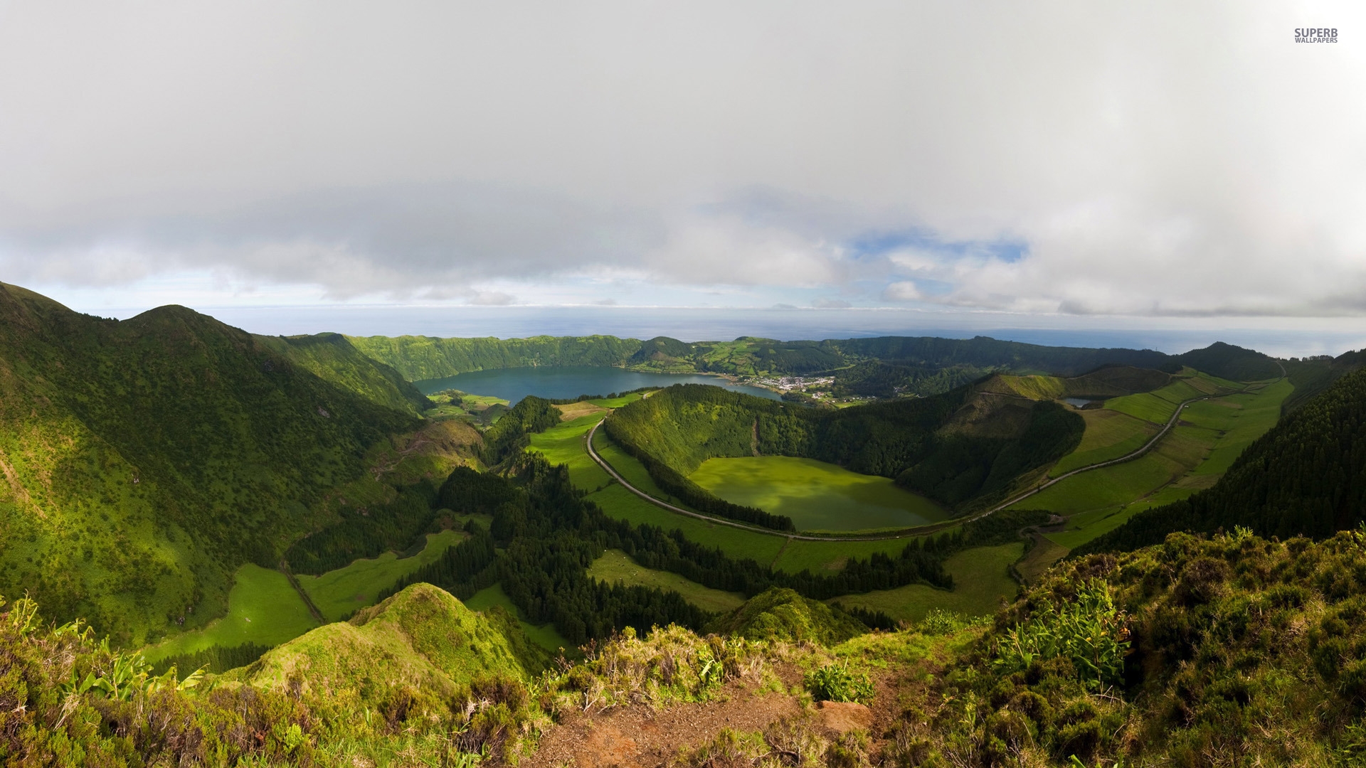 1 张 高清晰绿山蓝湖美景壁纸 : 957376