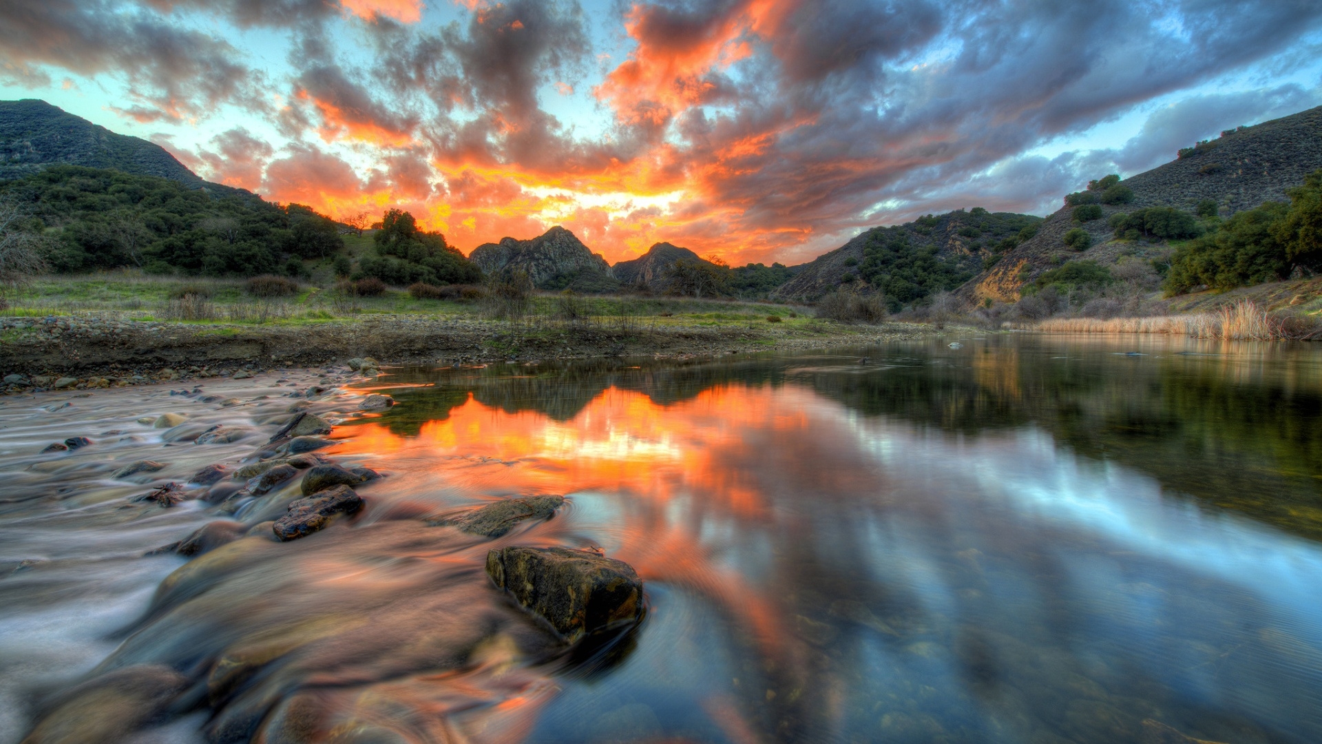 1 张 加拿大河木草日落 : 948736