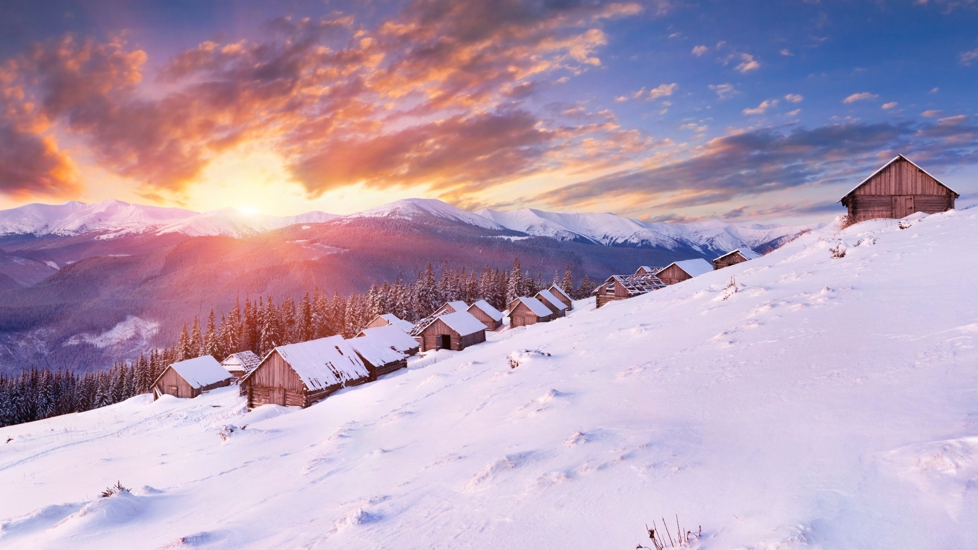 1 张 日落下的雪峰小屋树 : 948817