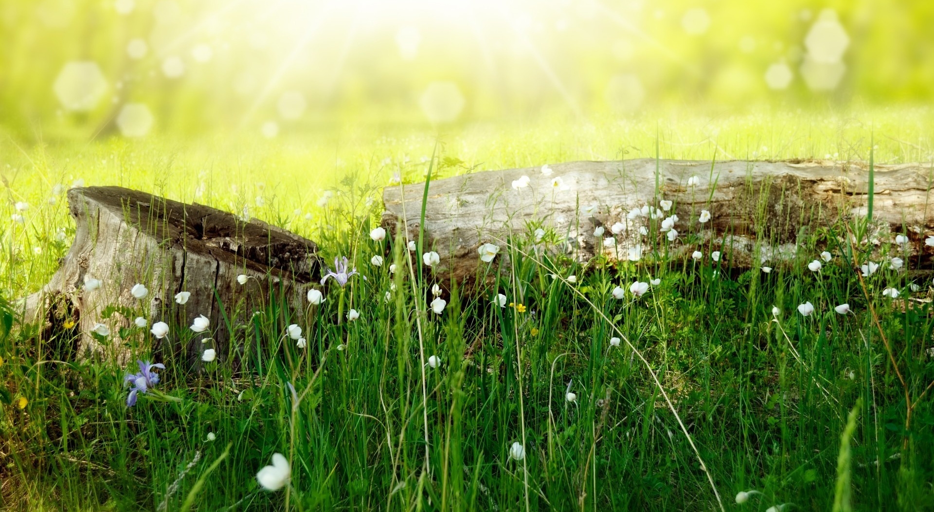 1 张 高清晰阳光下的森林百花草壁纸 : 949998