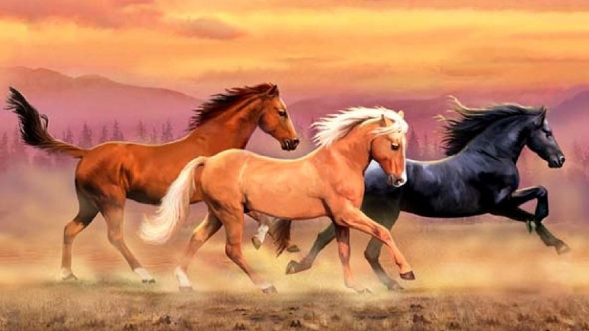 1 张 高清晰三匹水彩山野马壁纸 : 950460