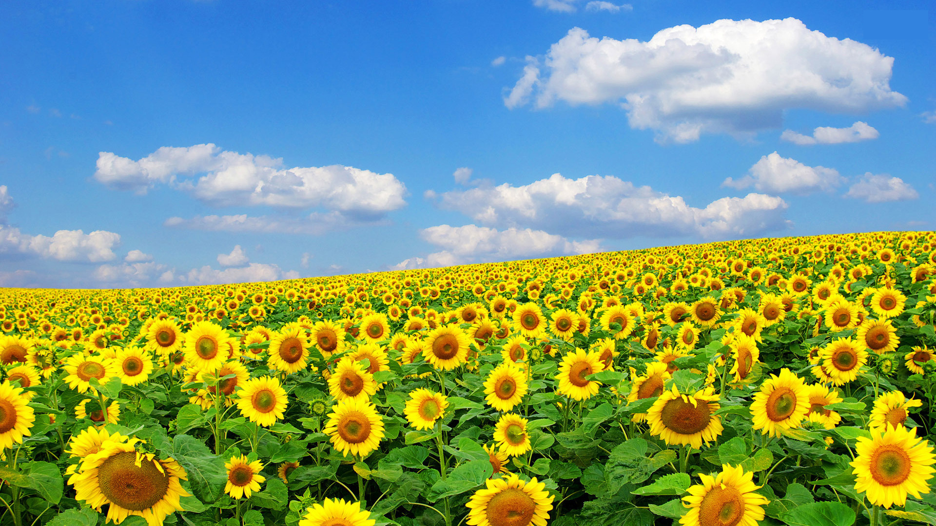 1 张 高清晰蓝天白云下的向日葵植物花场壁纸 : 938320