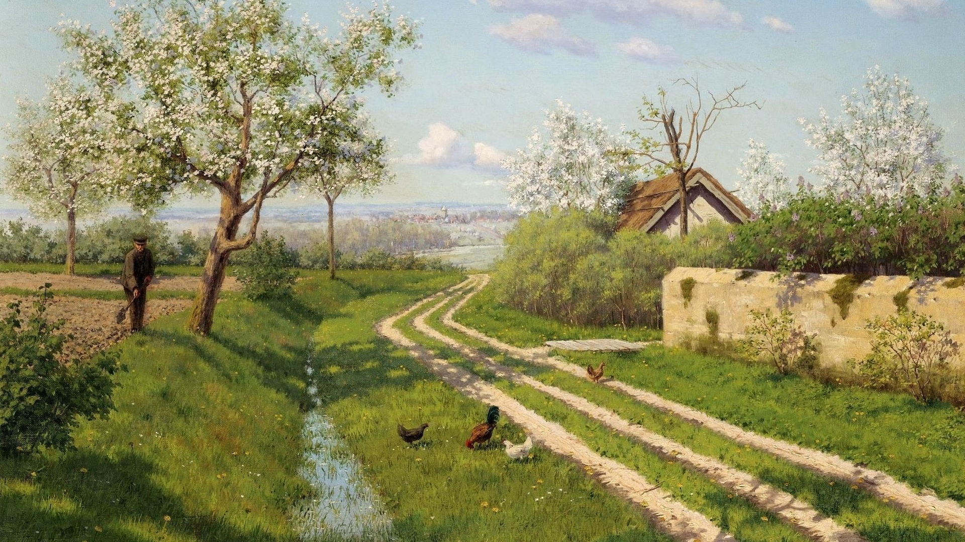 1 张 高清晰农庄小院草地小鸡美景壁纸 : 951616