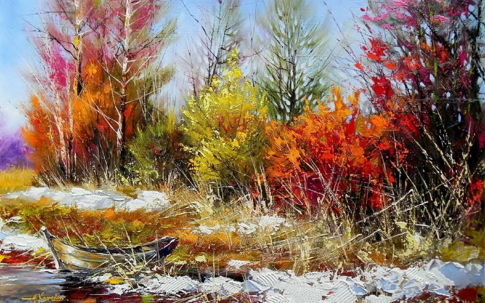 1 张 美丽的秋季河油画壁纸 : 951515