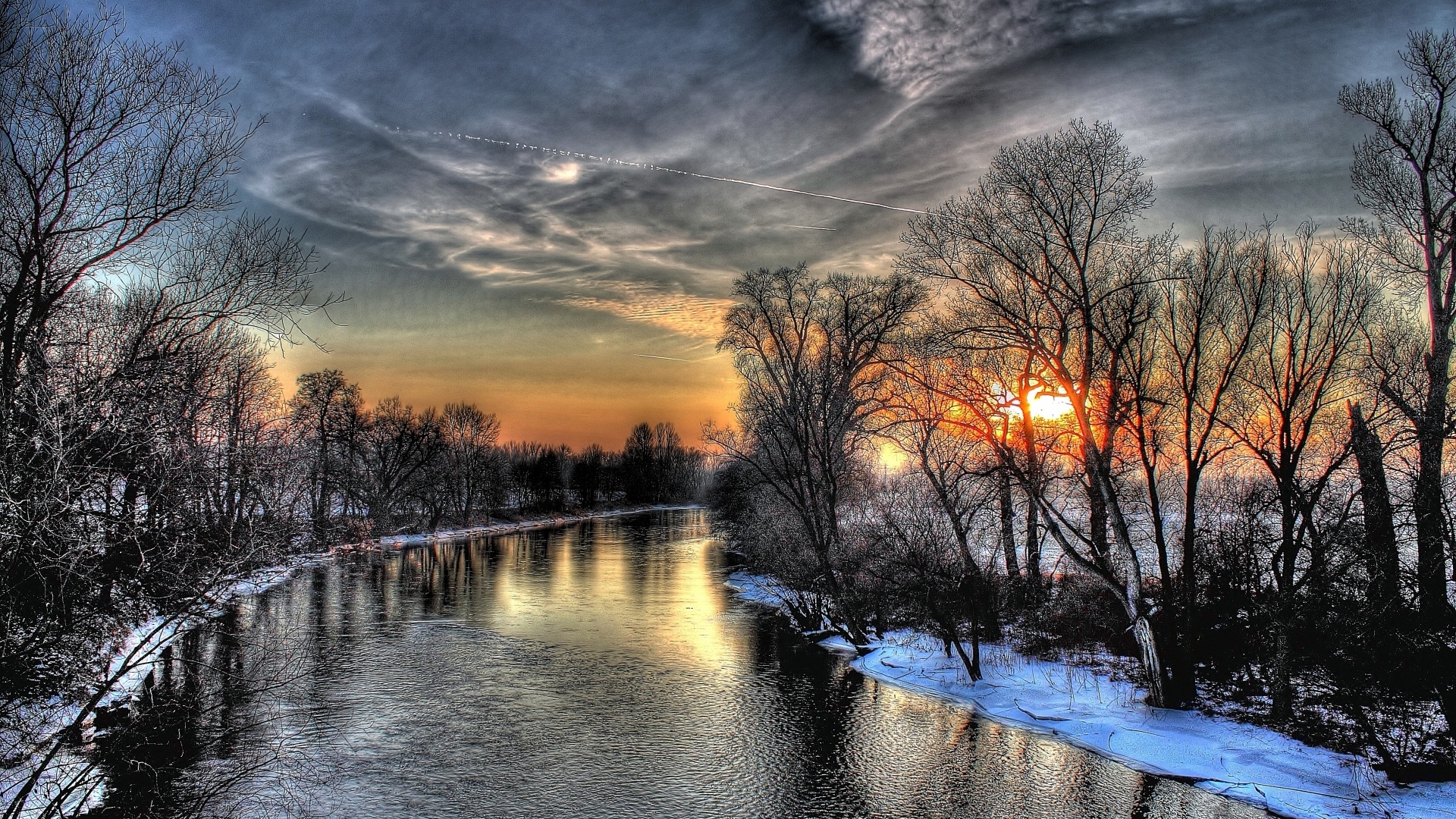 1 张 夕阳下的雪河树壁纸 : 948814