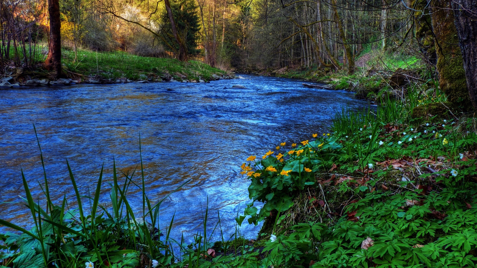 1 张 明亮的绿树小溪壁纸 : 955118