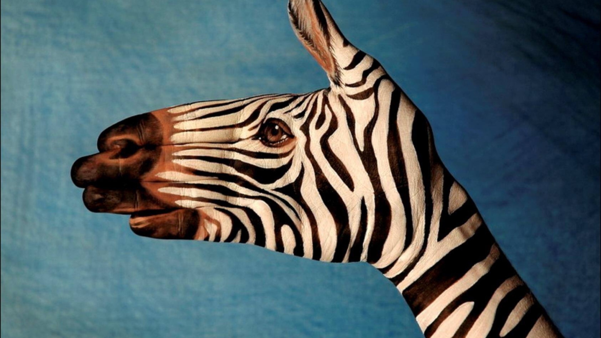 1 张 手掌彩绘的斑马 : 955109