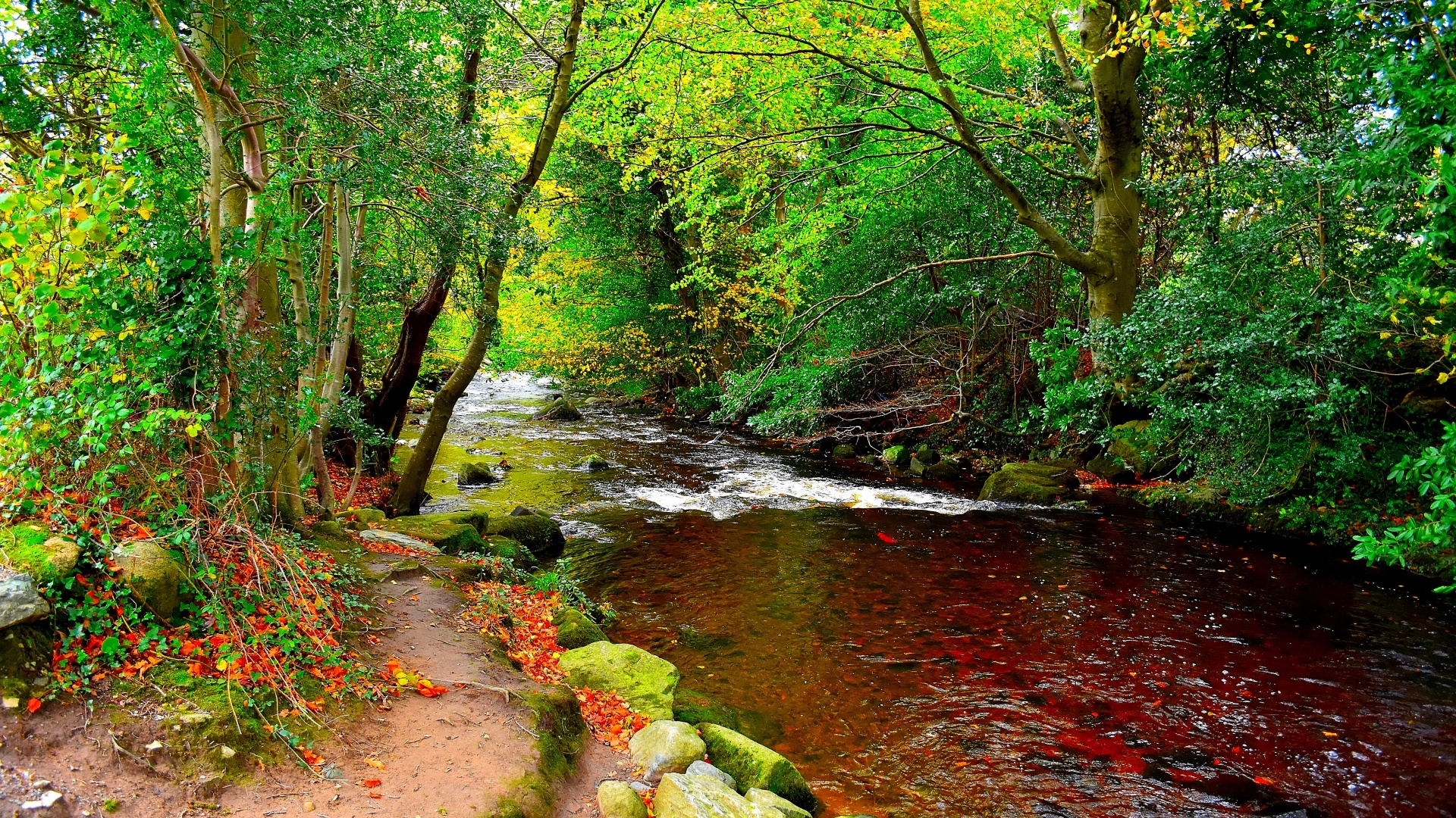 2 张 高清晰漂亮的绿色森林河流壁纸 : 953511