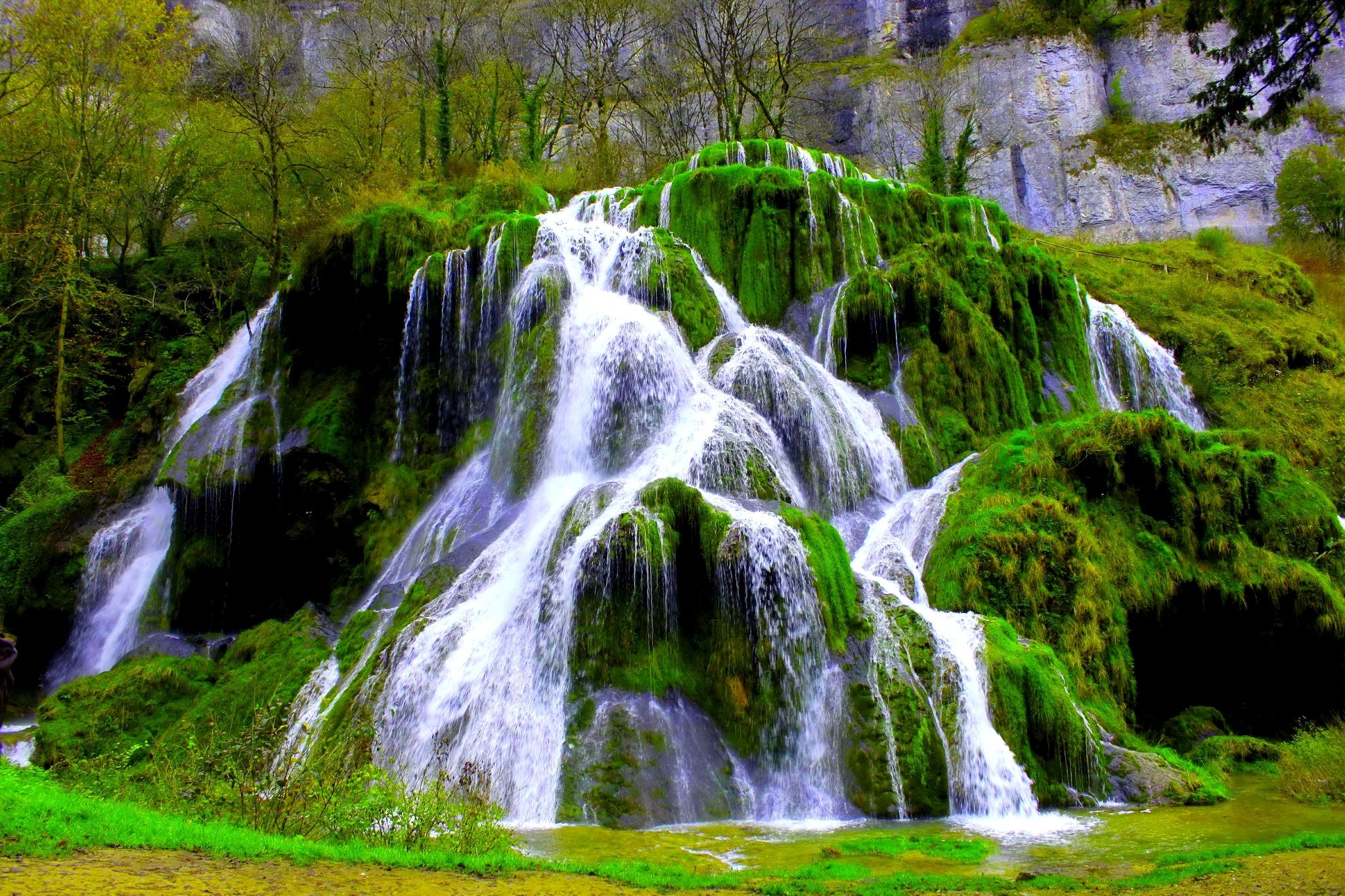 1 张 高清晰瀑布河树木岩石壁纸 : 946536