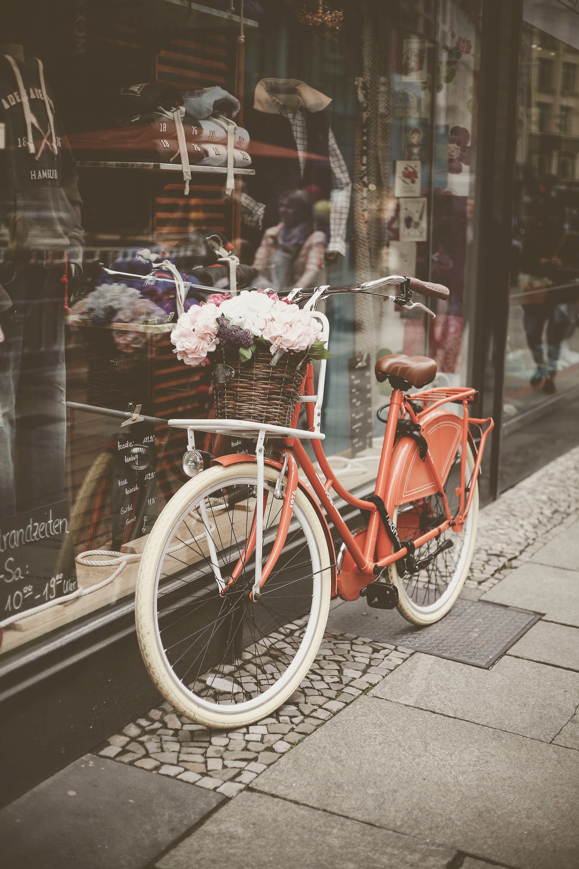 1 张 街边的红色女性复古自行车 : 969549