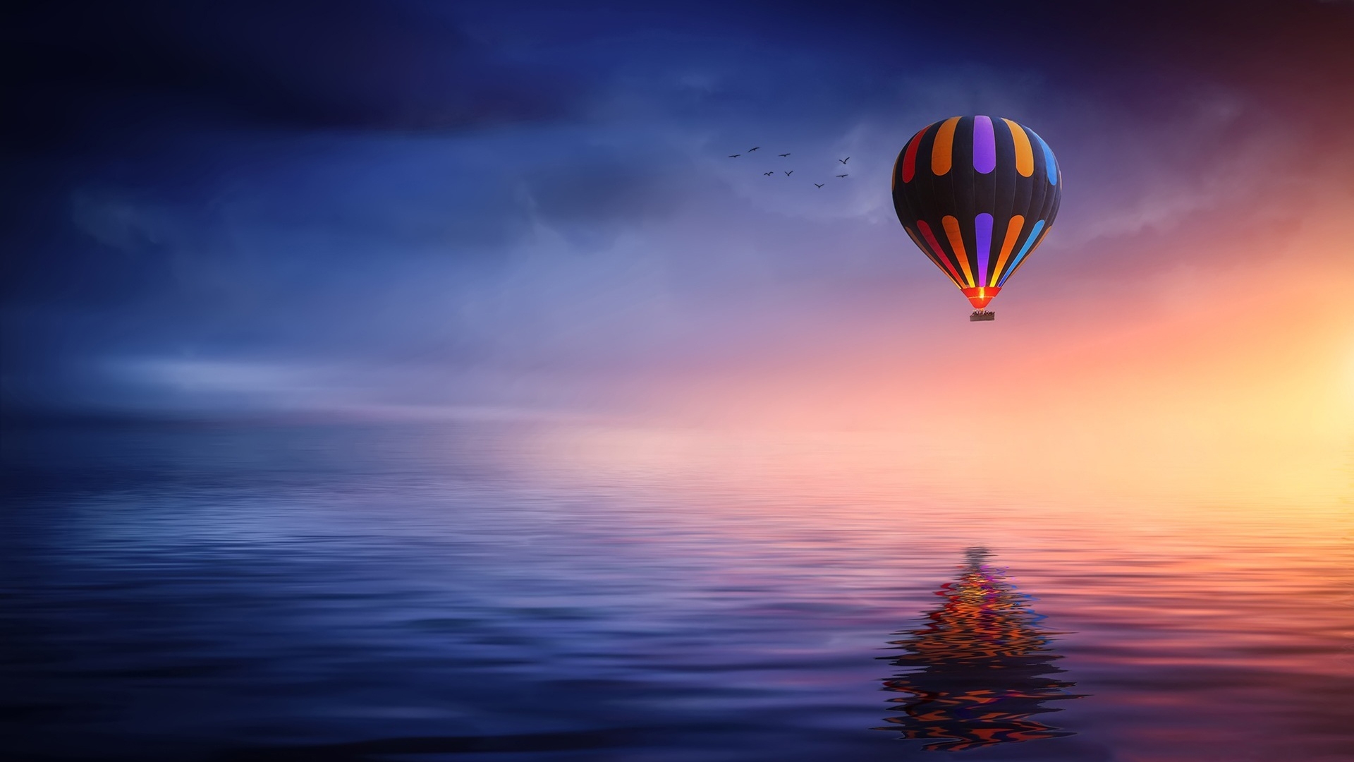 1 张 高清晰水面上的彩色热气球壁纸 : 965206