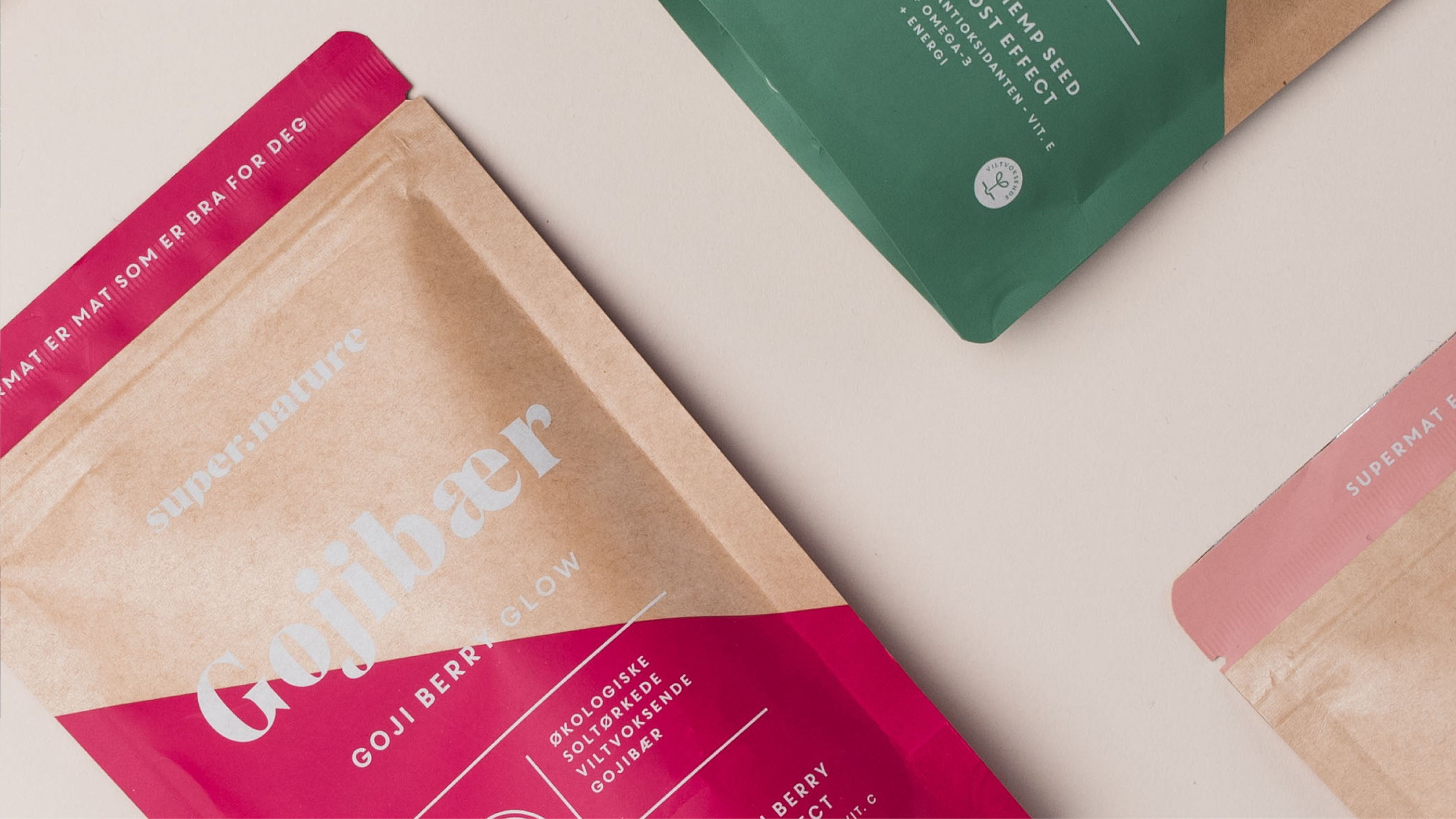 倾斜的设计元素和天然材料从品牌名称中脱颖而出,该名称由两部分组成:超级和自然。 “超级”标志着能量和效果,“自然”标志着来自质量控制的清洁,可持续的食物。