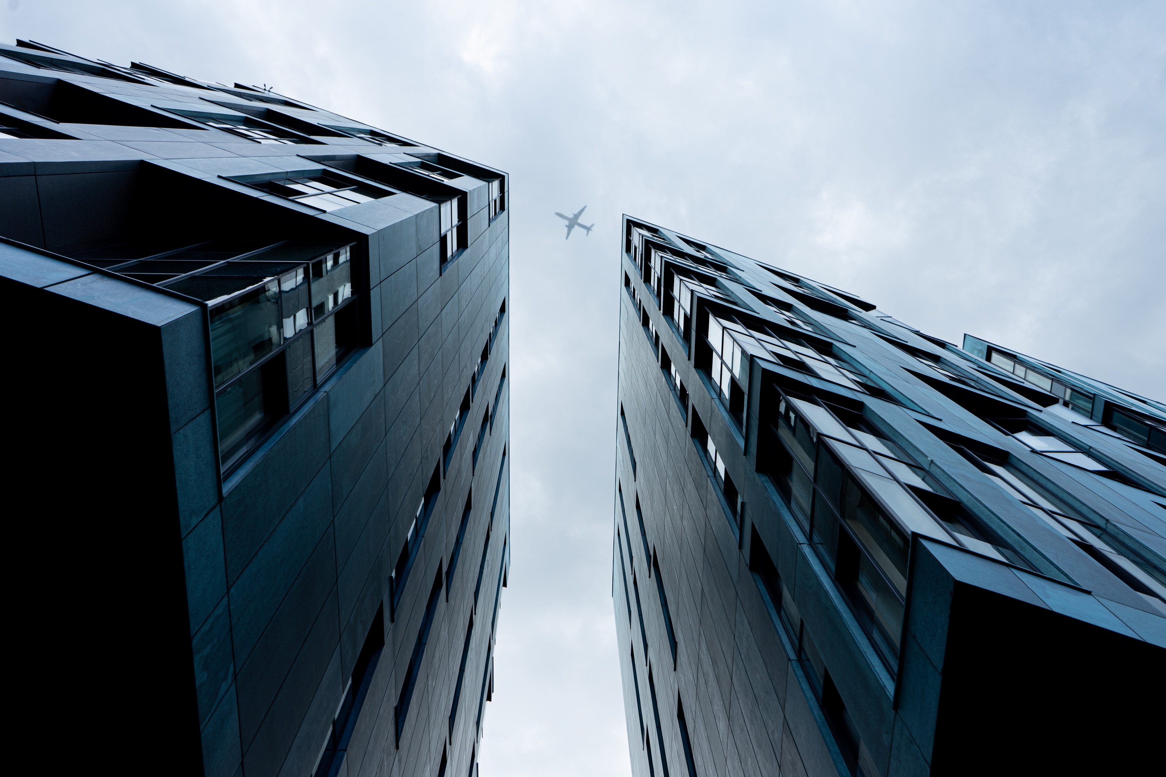 1 张 仰拍写字楼上空的飞机 : 975279