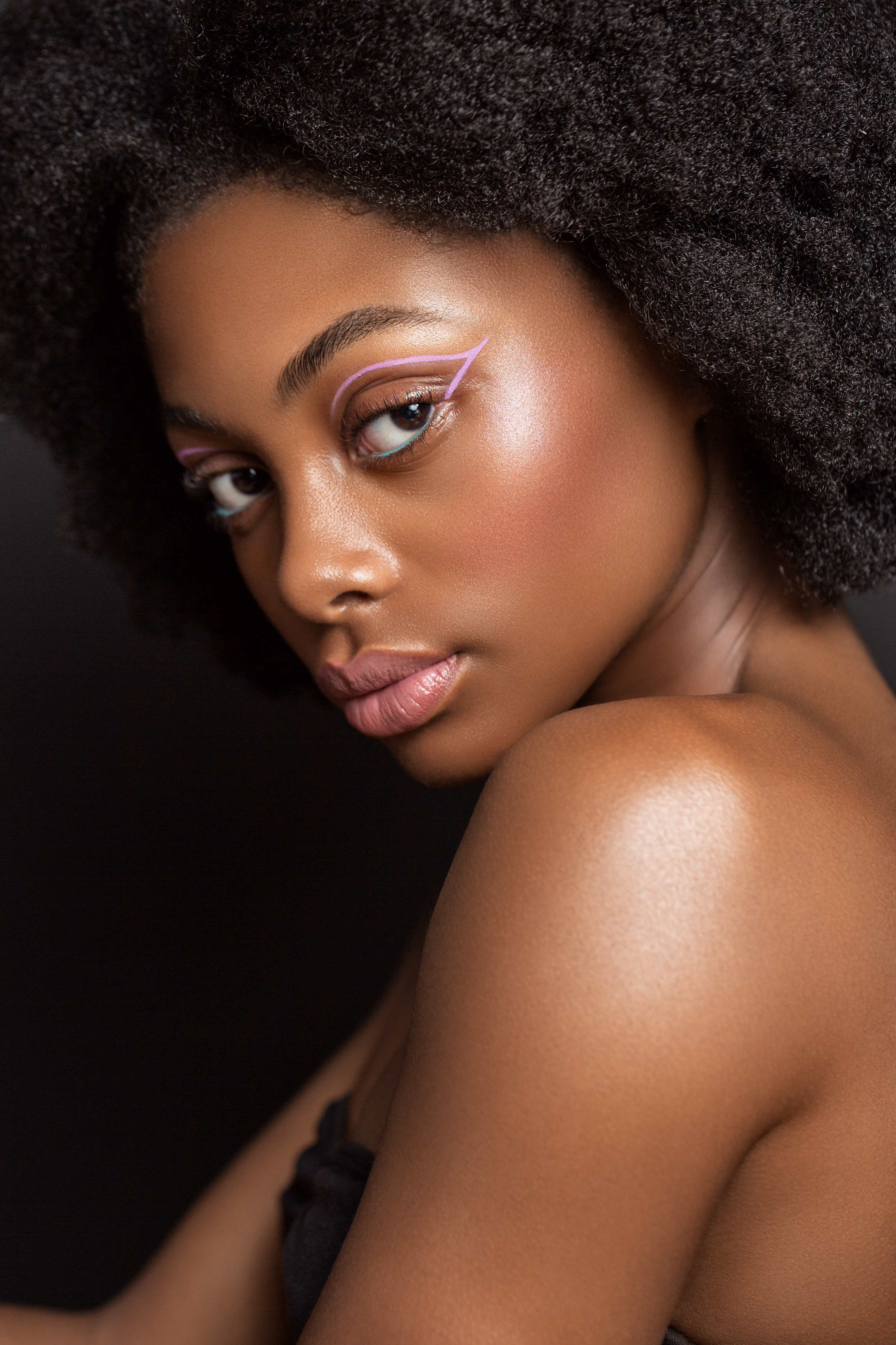 5 张 油滑黑珍珠的魅力-高光泽度的流行视觉人像,宝石色调的眼影 : 915244