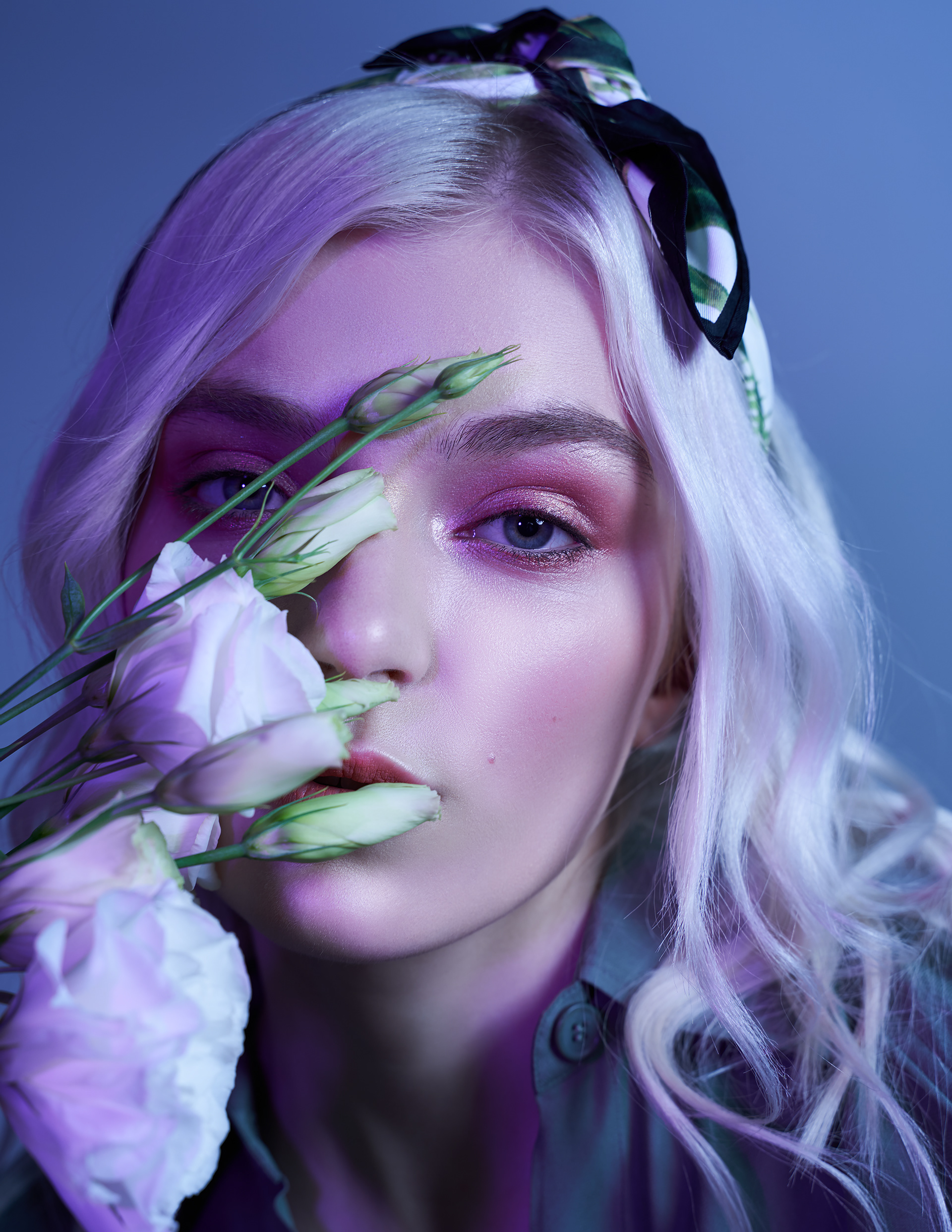 1 张 手拿紫花的蓝发鼻环女郎 : 987747