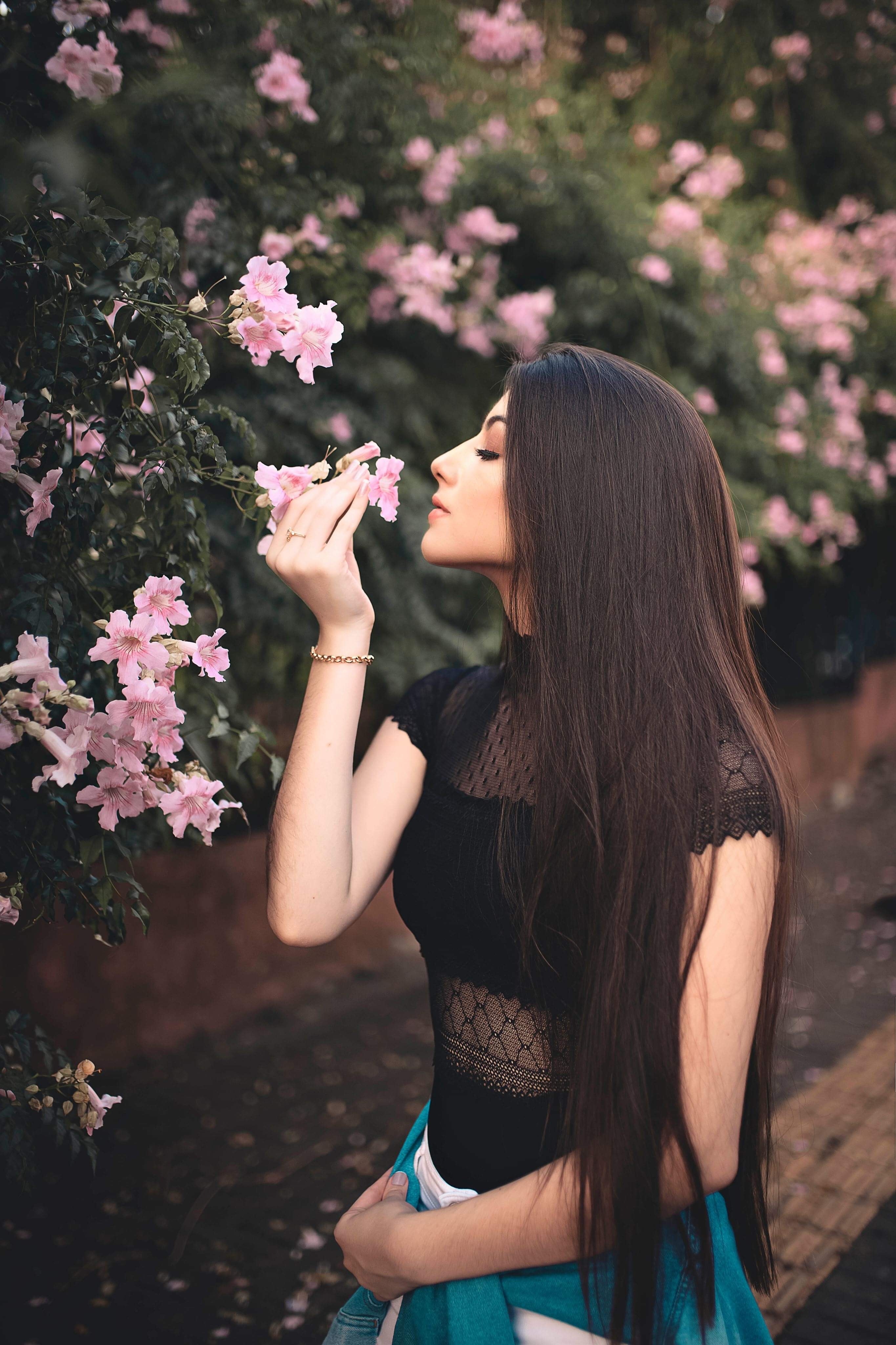 1 张 摘花闻花的长发女子 : 977739