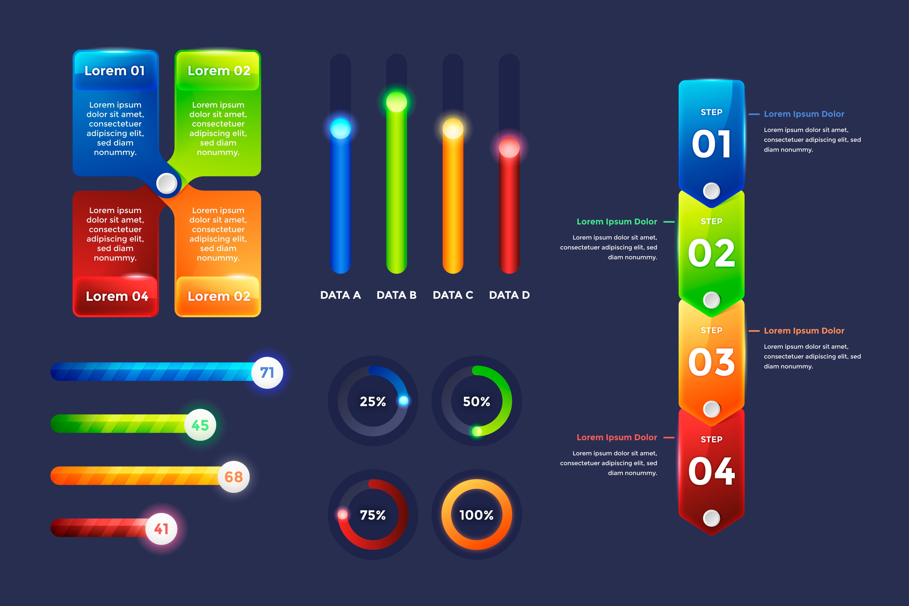 1 张 五彩的信息图表步骤模板素材下载 : 980672