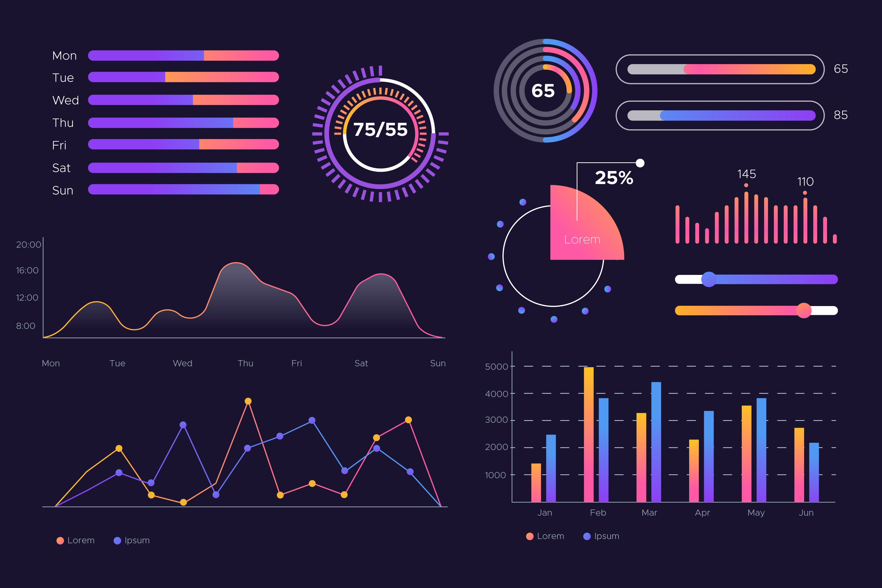 1 张 紫色仪表板图表元素集合 : 980502