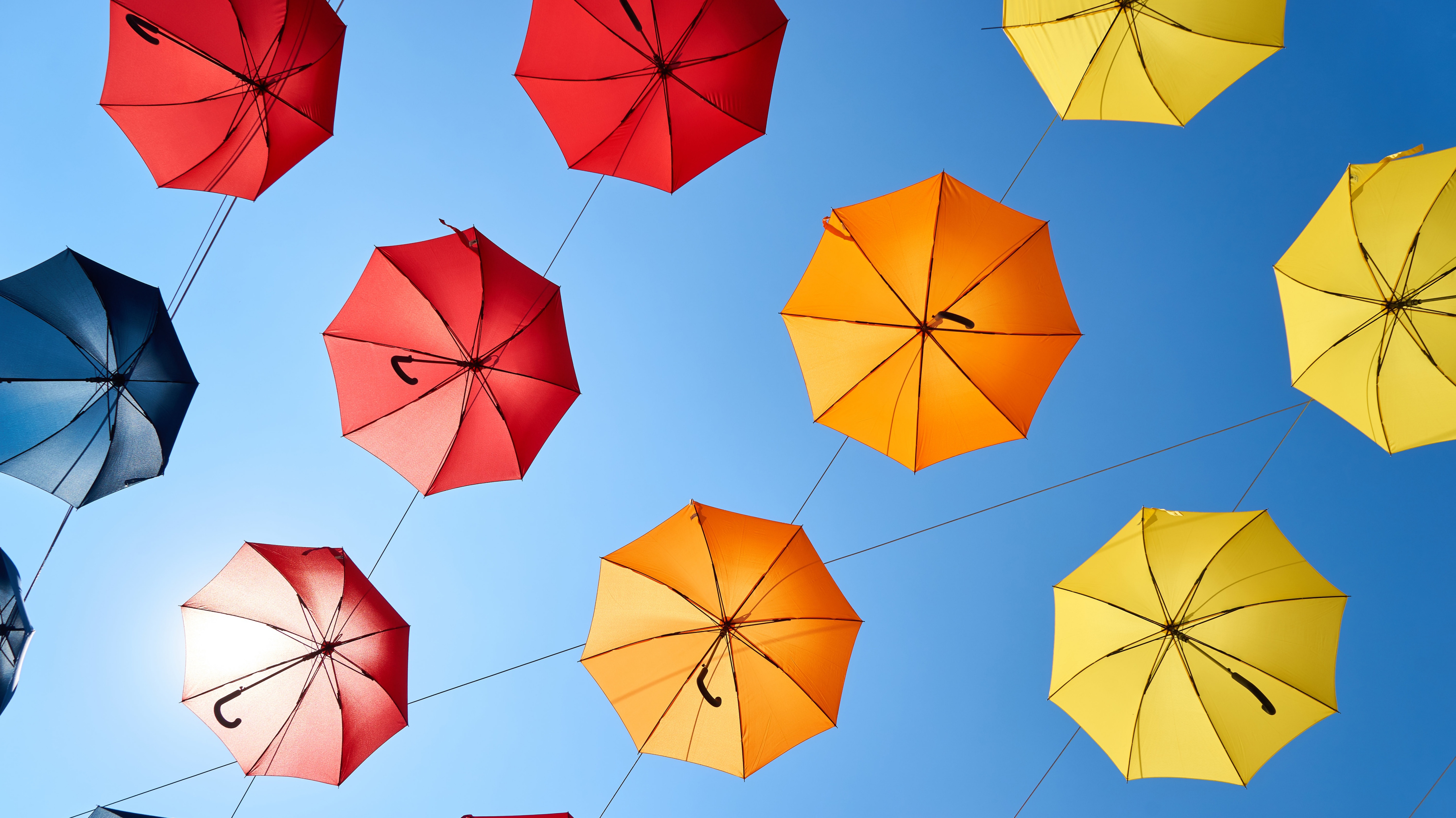 1 张 高清晰悬挂在屋顶的五彩雨伞壁纸 : 970815