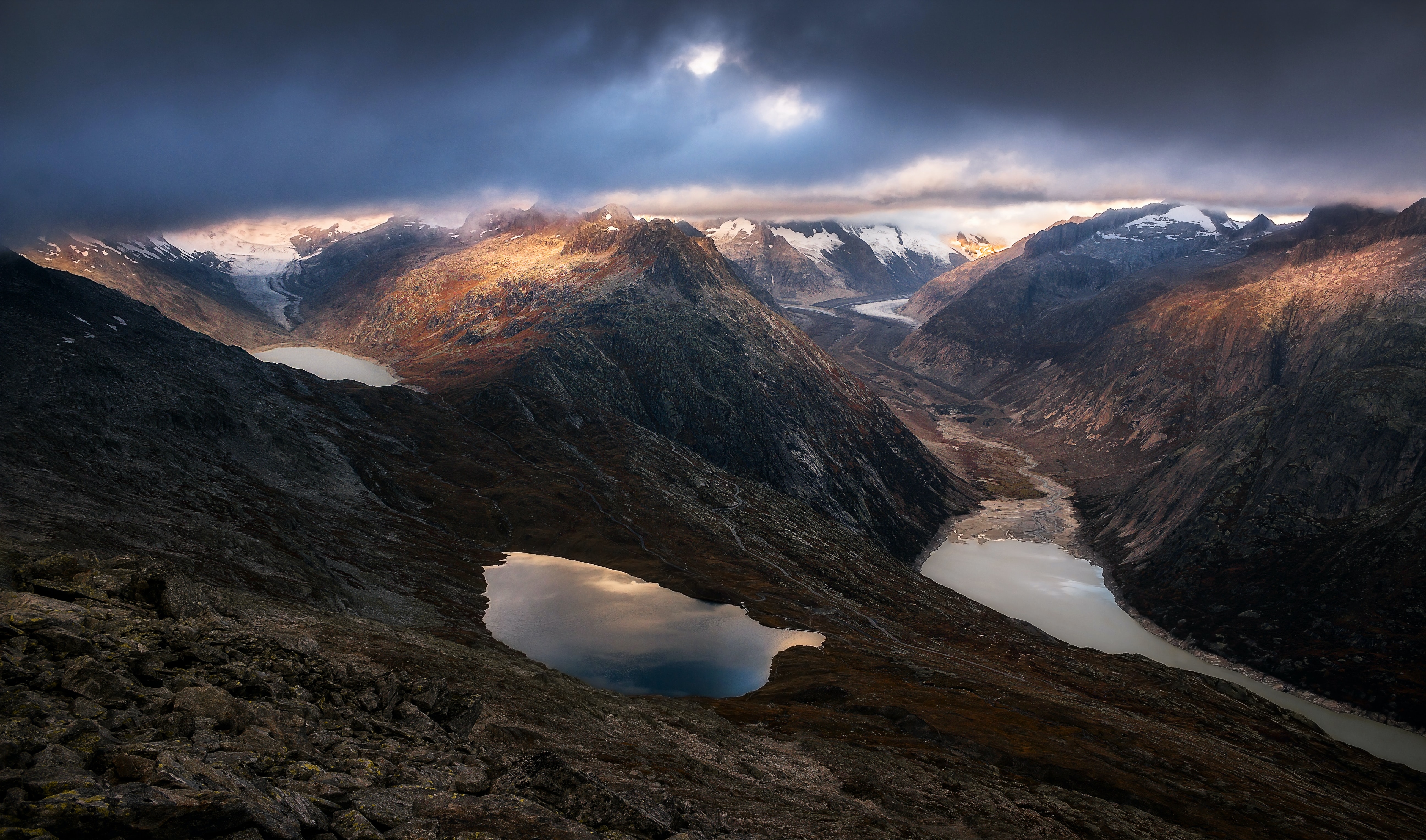 1 张 金色天空下的雪山湖壁纸 : 947242