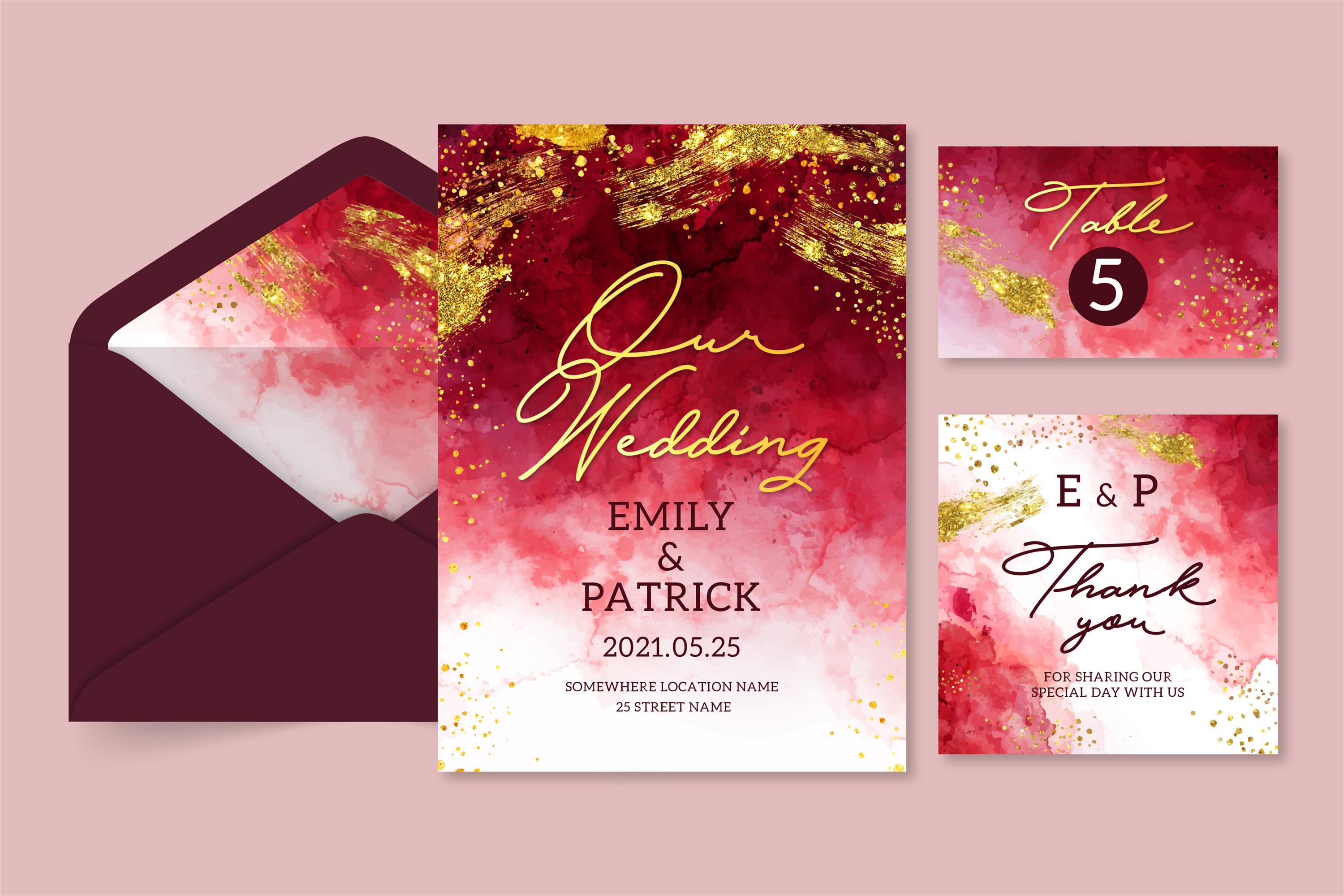 1 张 绯红色黄金典雅婚礼套装 : 982537