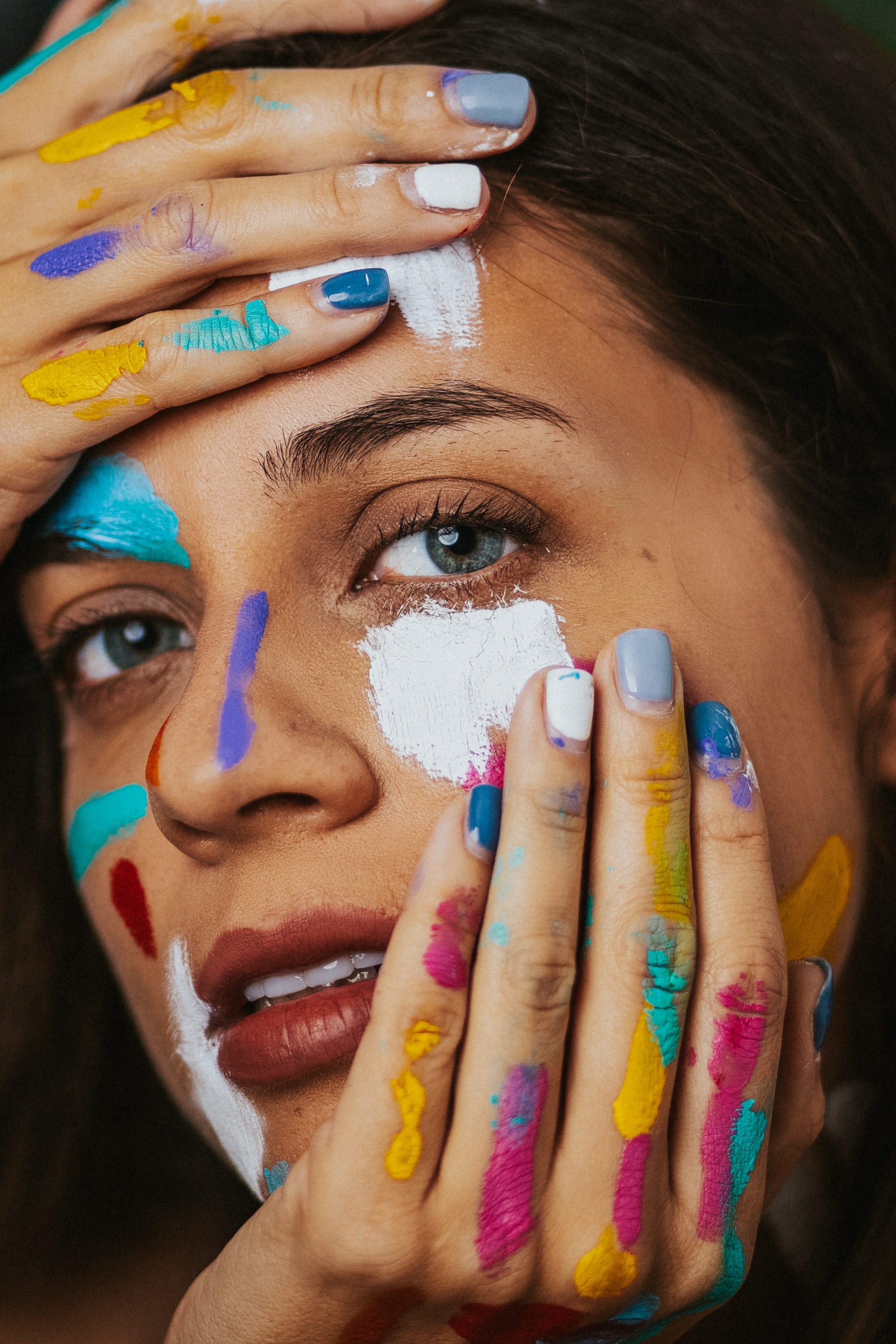 1 张 脸部涂彩色油漆的女子 : 997166
