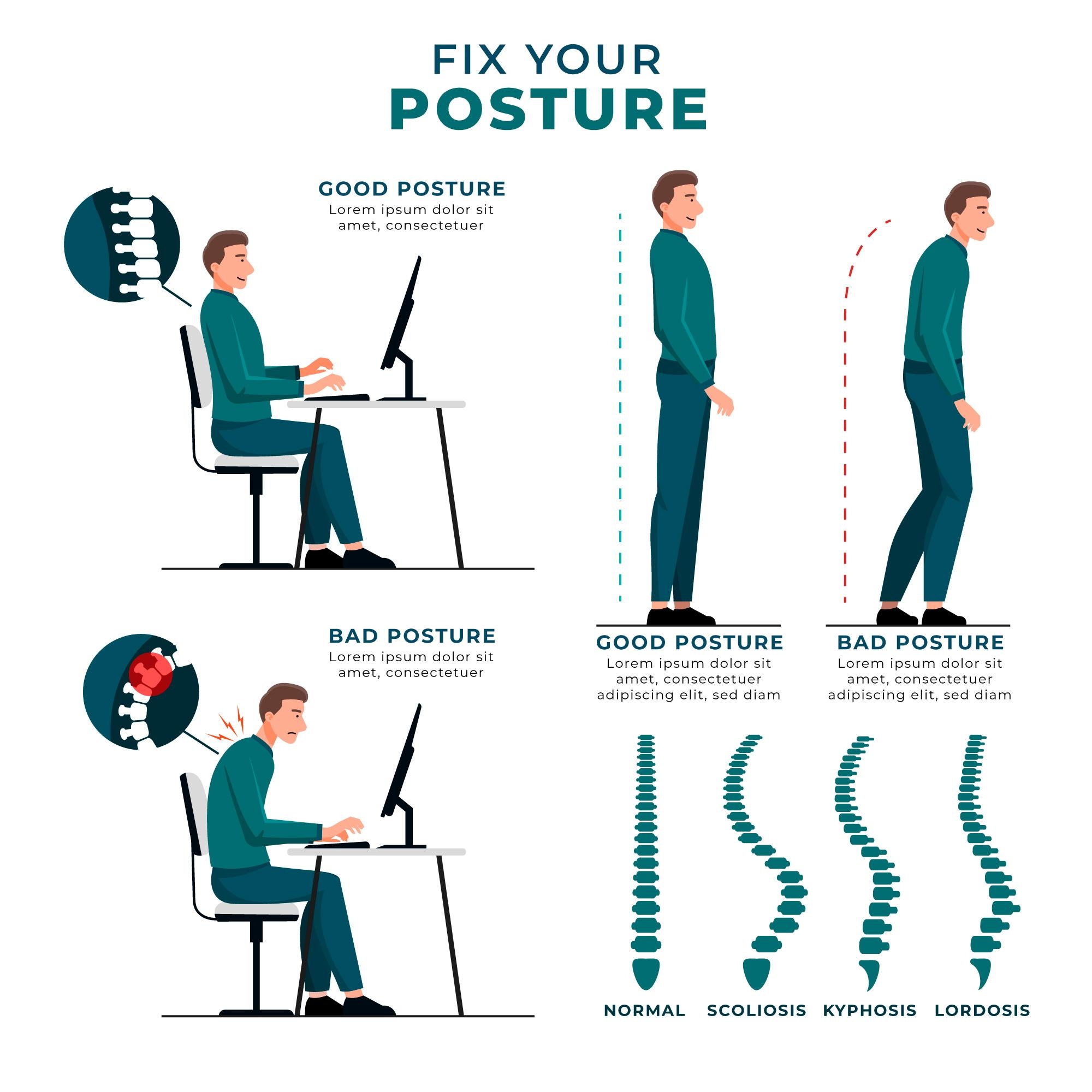 1 张 卡通正确错误坐姿脊椎素材下载 : 997022