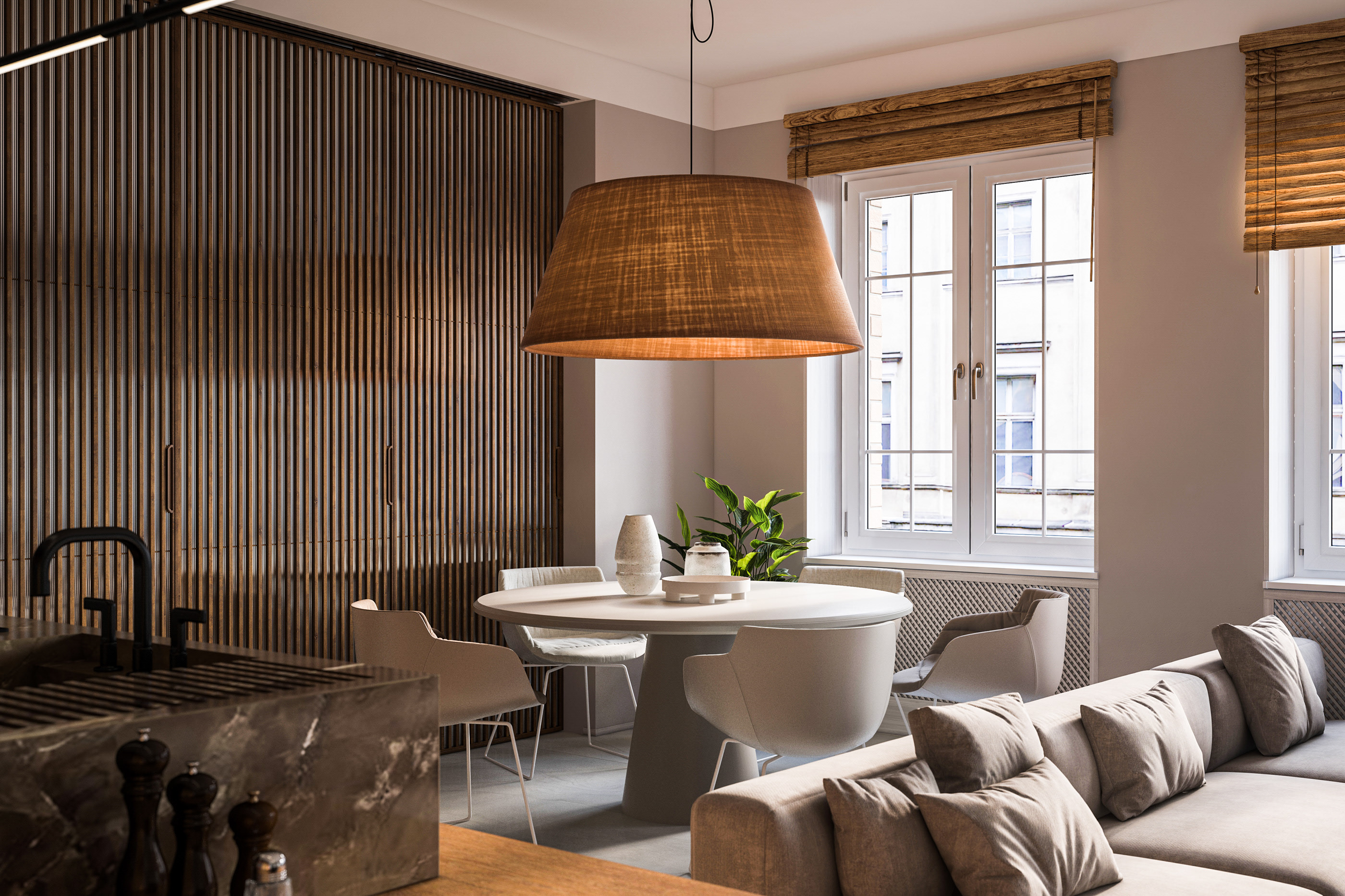 27 张 一个90平方米黑暗和平静天然木材公寓 : 959676