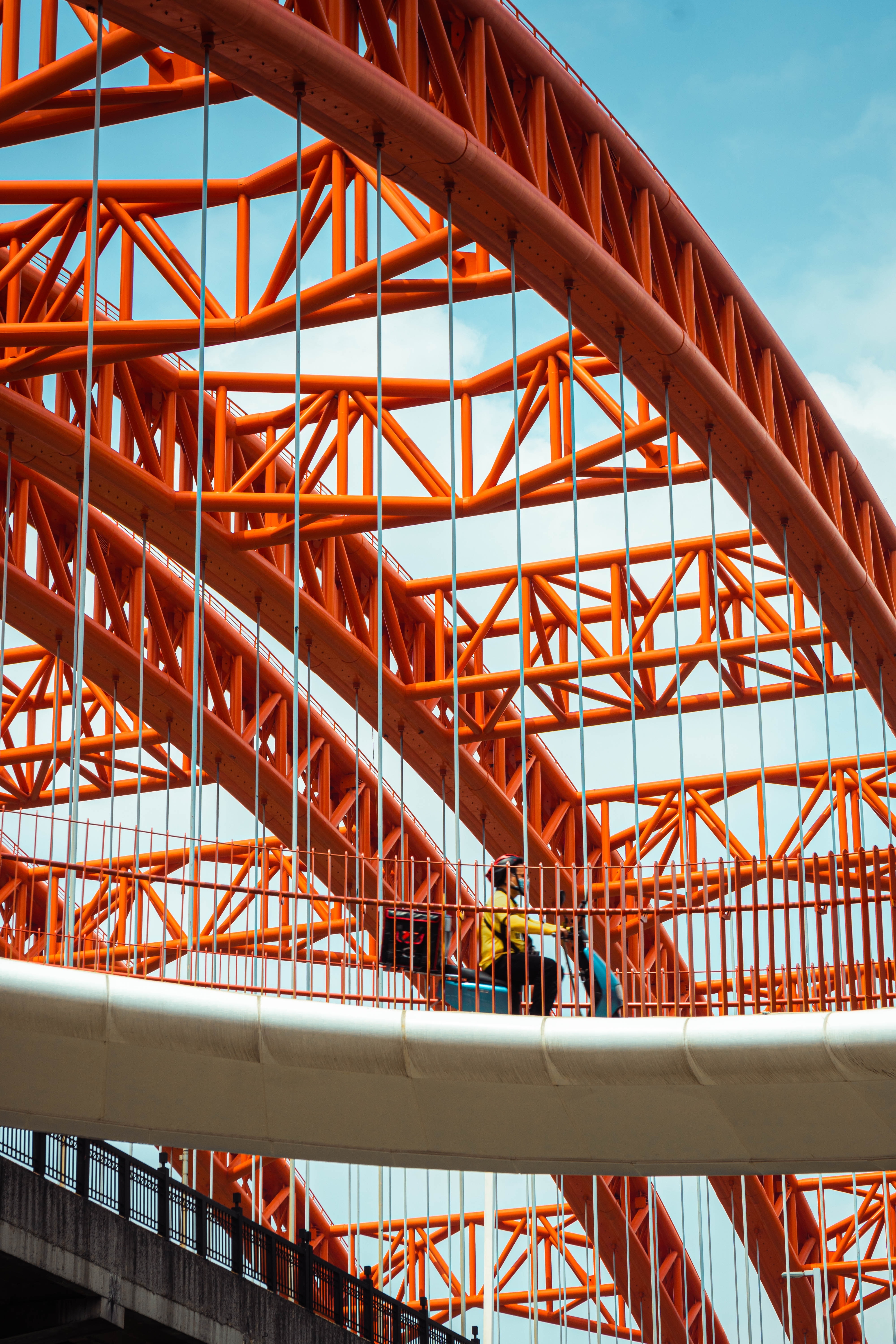 1 张 红色钢构桥下的外卖小哥 : 1000711