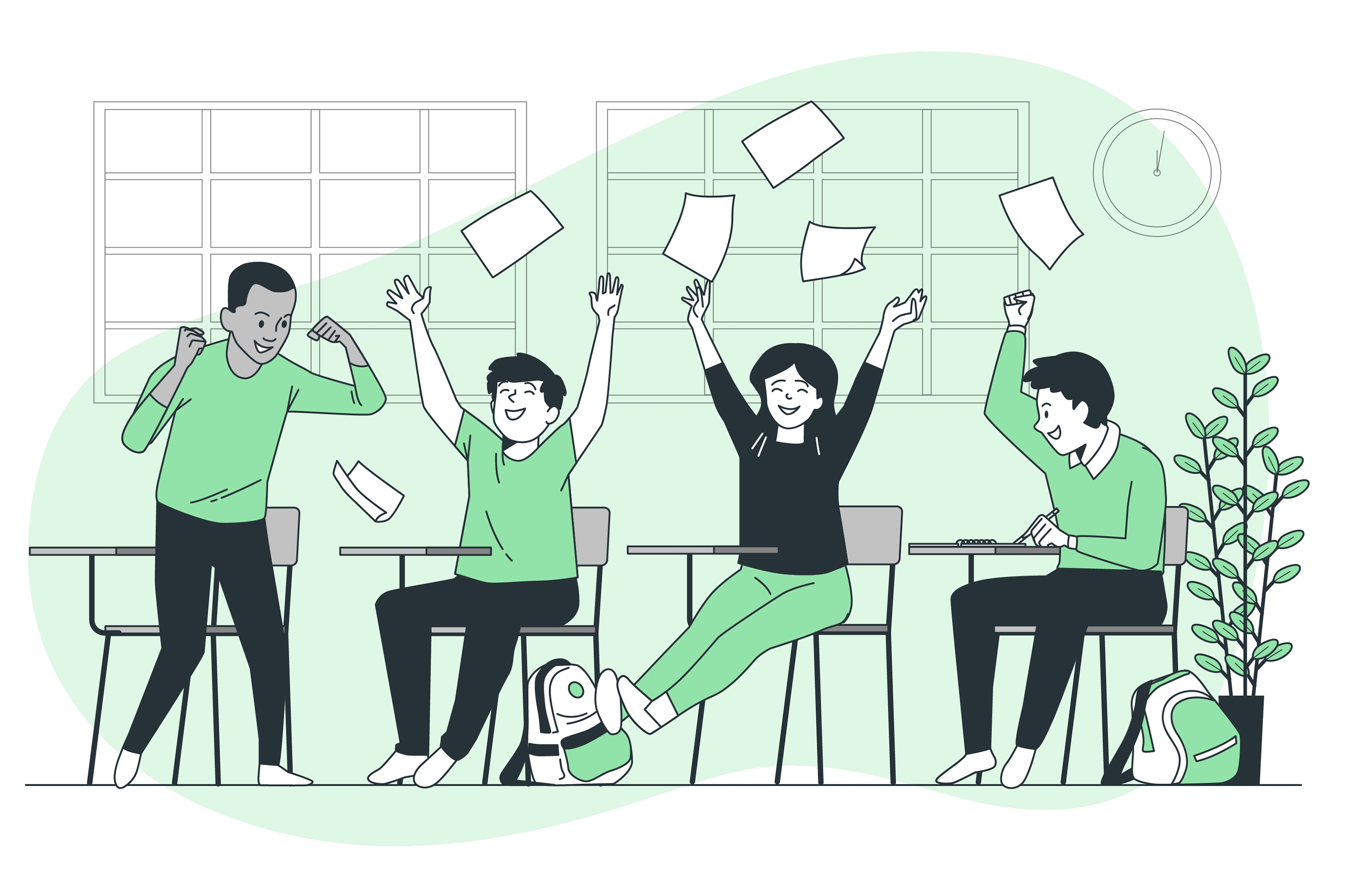 1 张 绿色卡通毕业扔空白作业的毕业素材下载 : 1001783