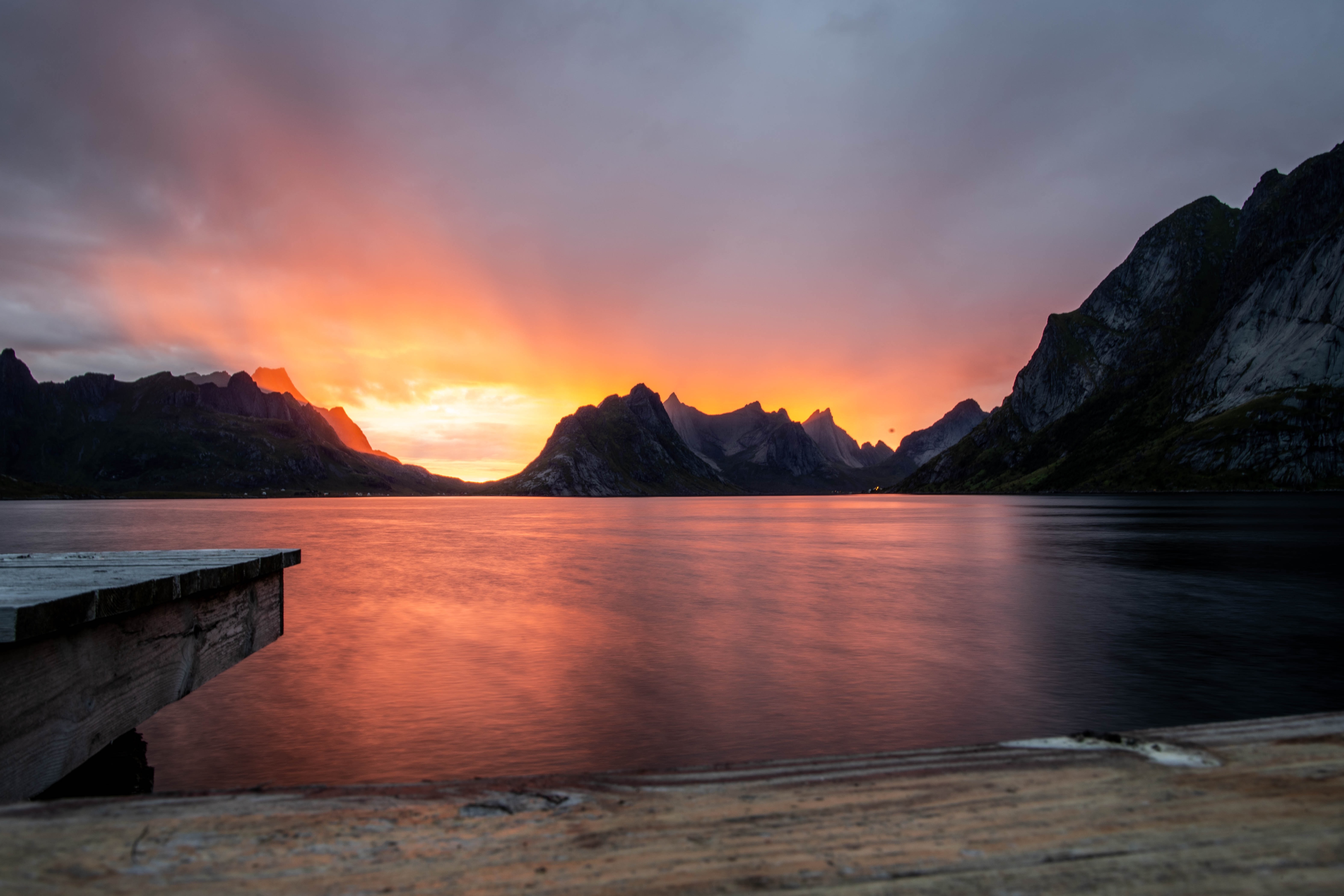1 张 黄昏下航拍的挪威渔港小镇美景 : 948541