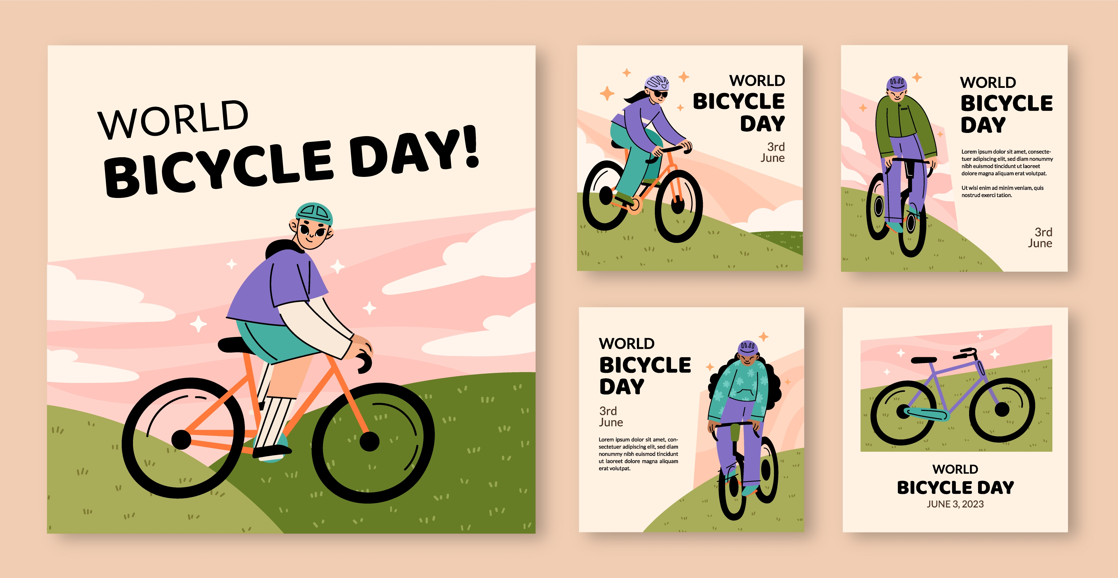 1 张 手绘卡通的世界自行车日庆祝活动 : 1007129