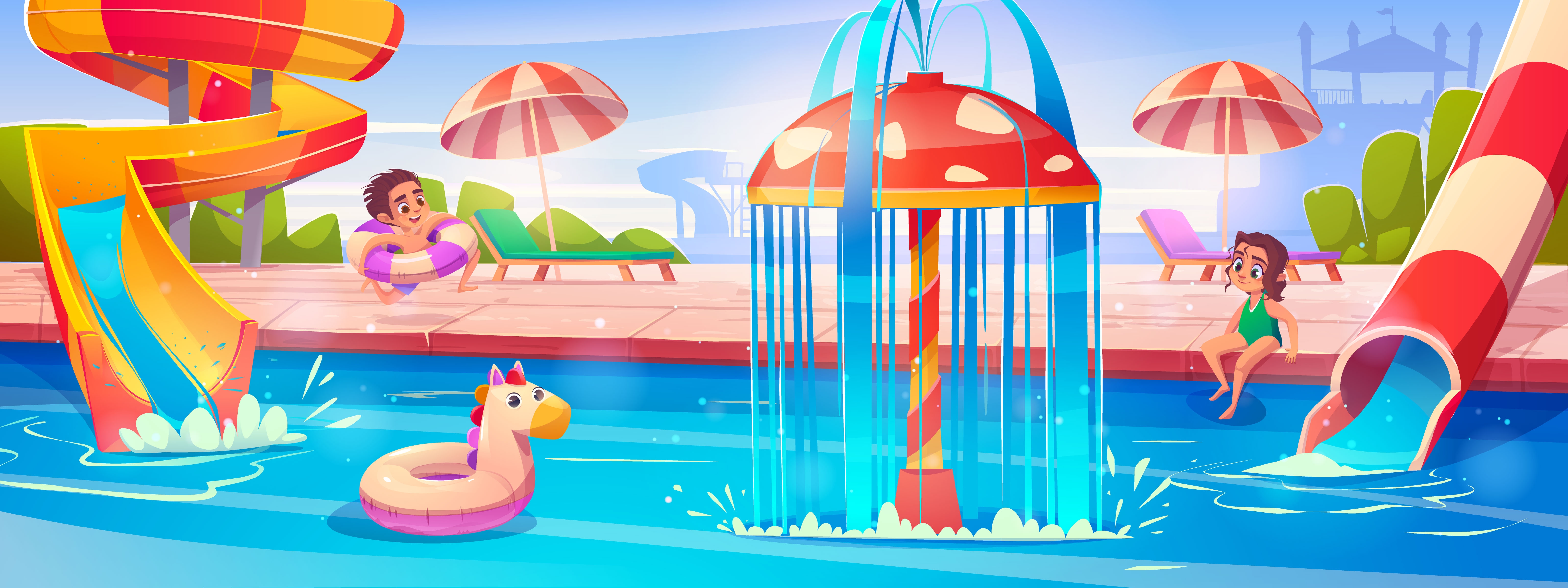 1 张 快乐的孩子们-矢量卡通玩水上乐园插图 : 1008742