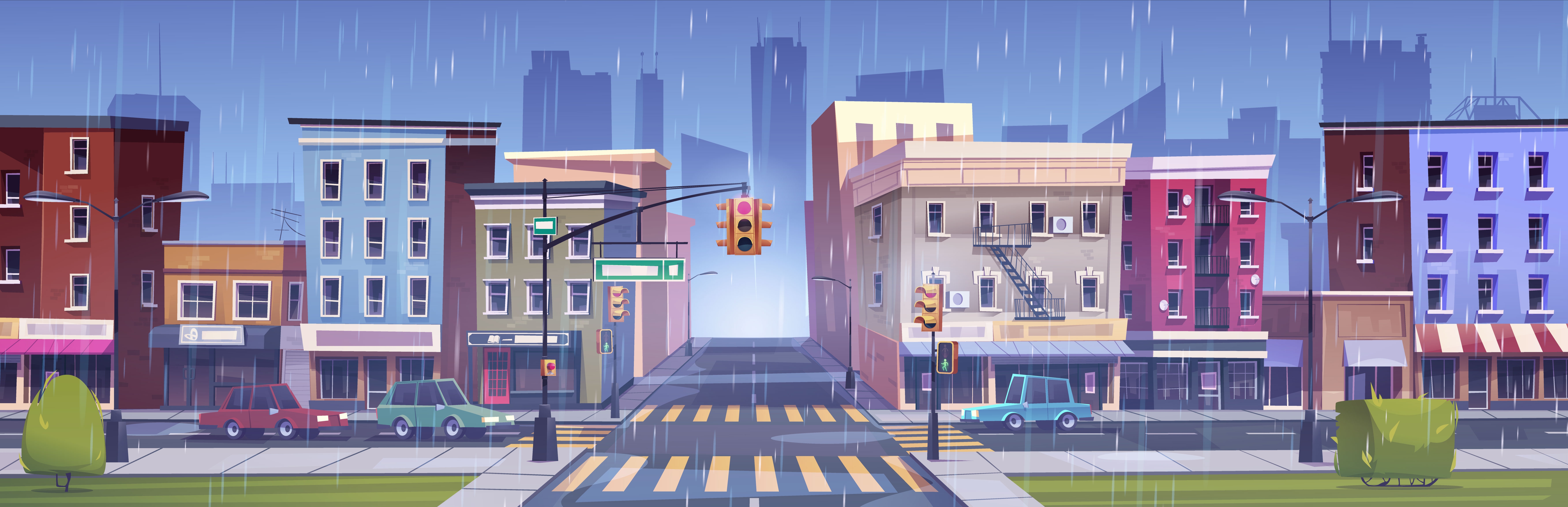 1 张 卡通公路山下雨天景观 : 1007521