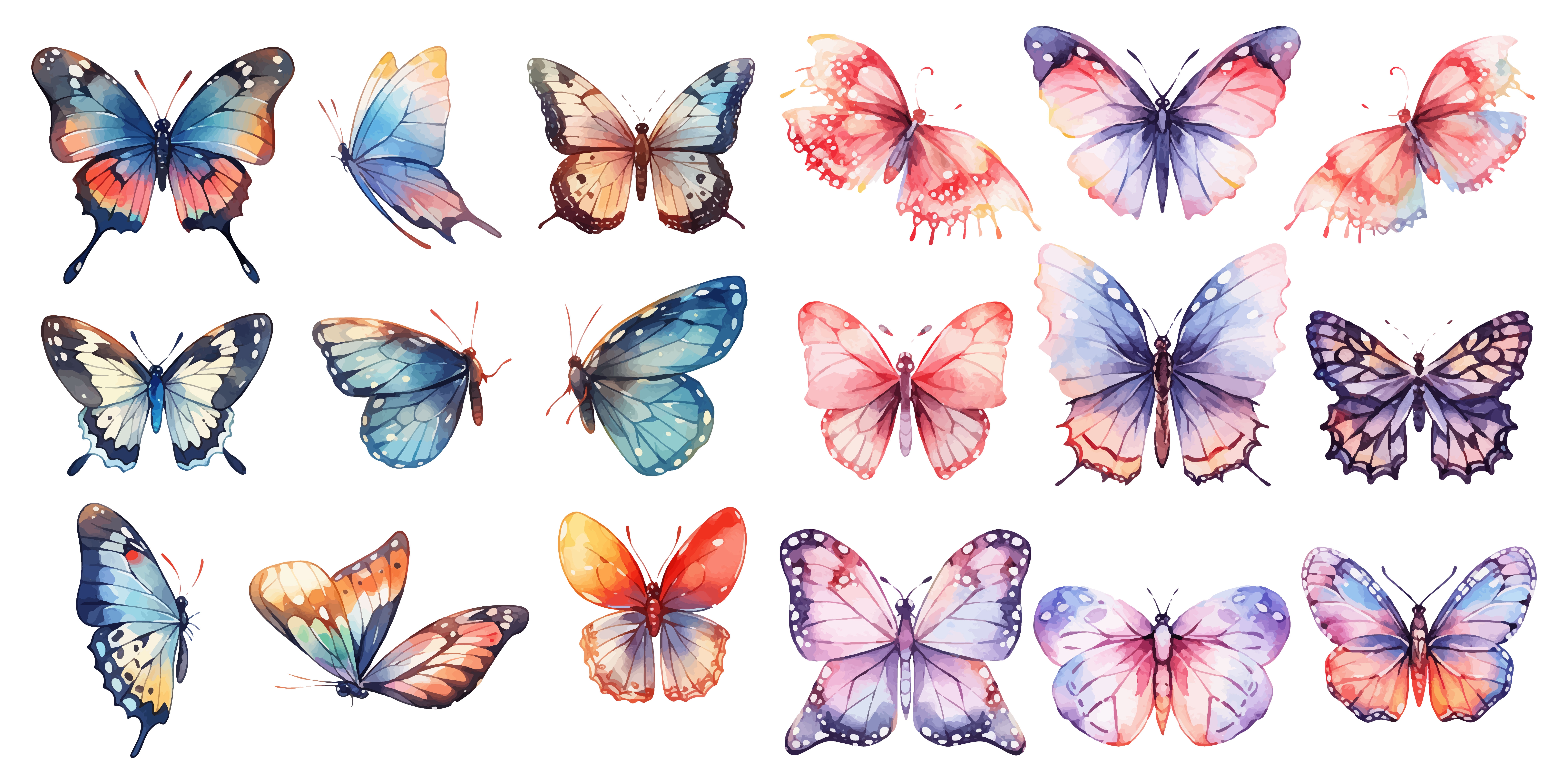 1 张 手绘逼真的彩色蝴蝶素材 : 1009983