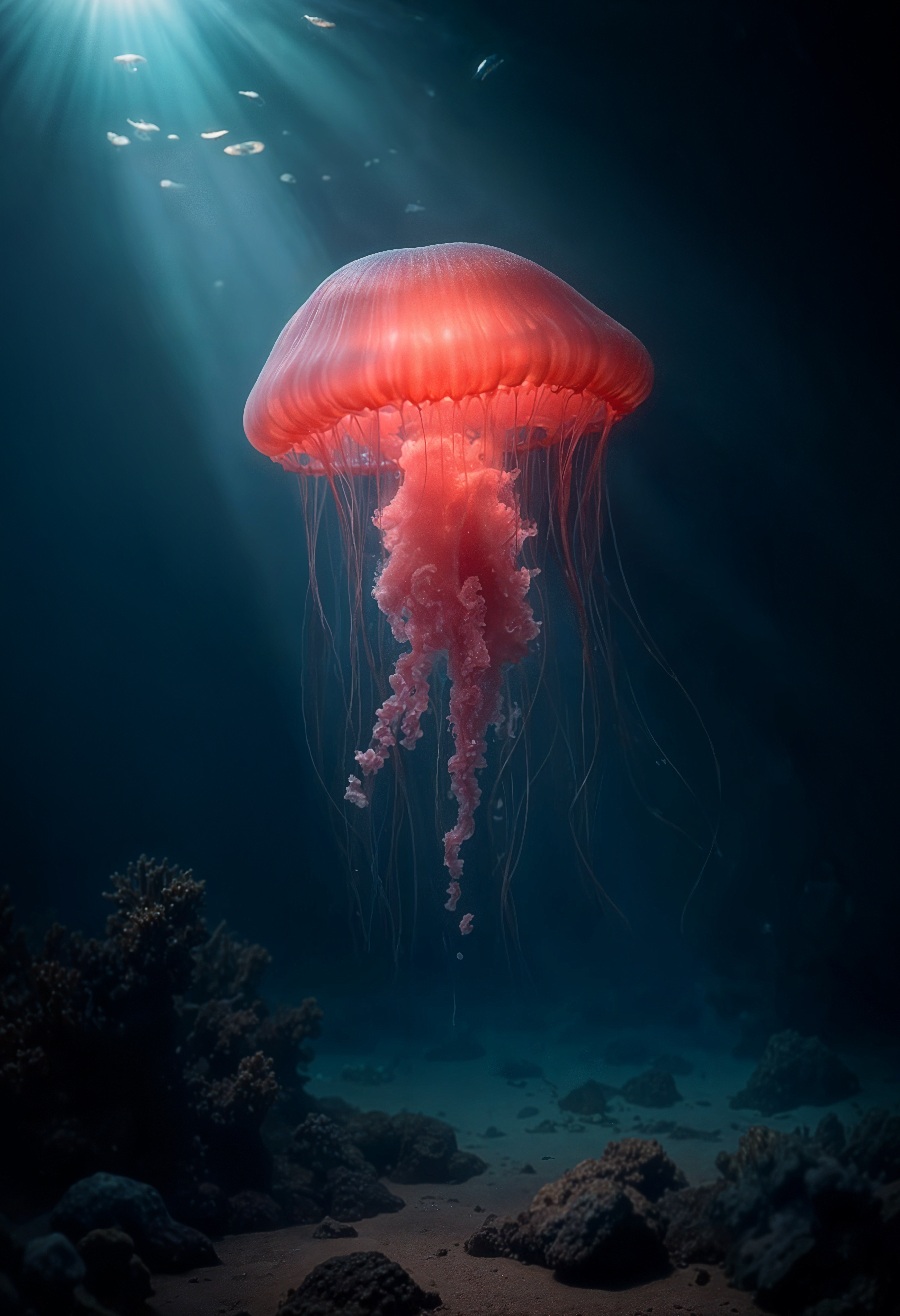 1 张 红色沉入海底的水母 : 991625