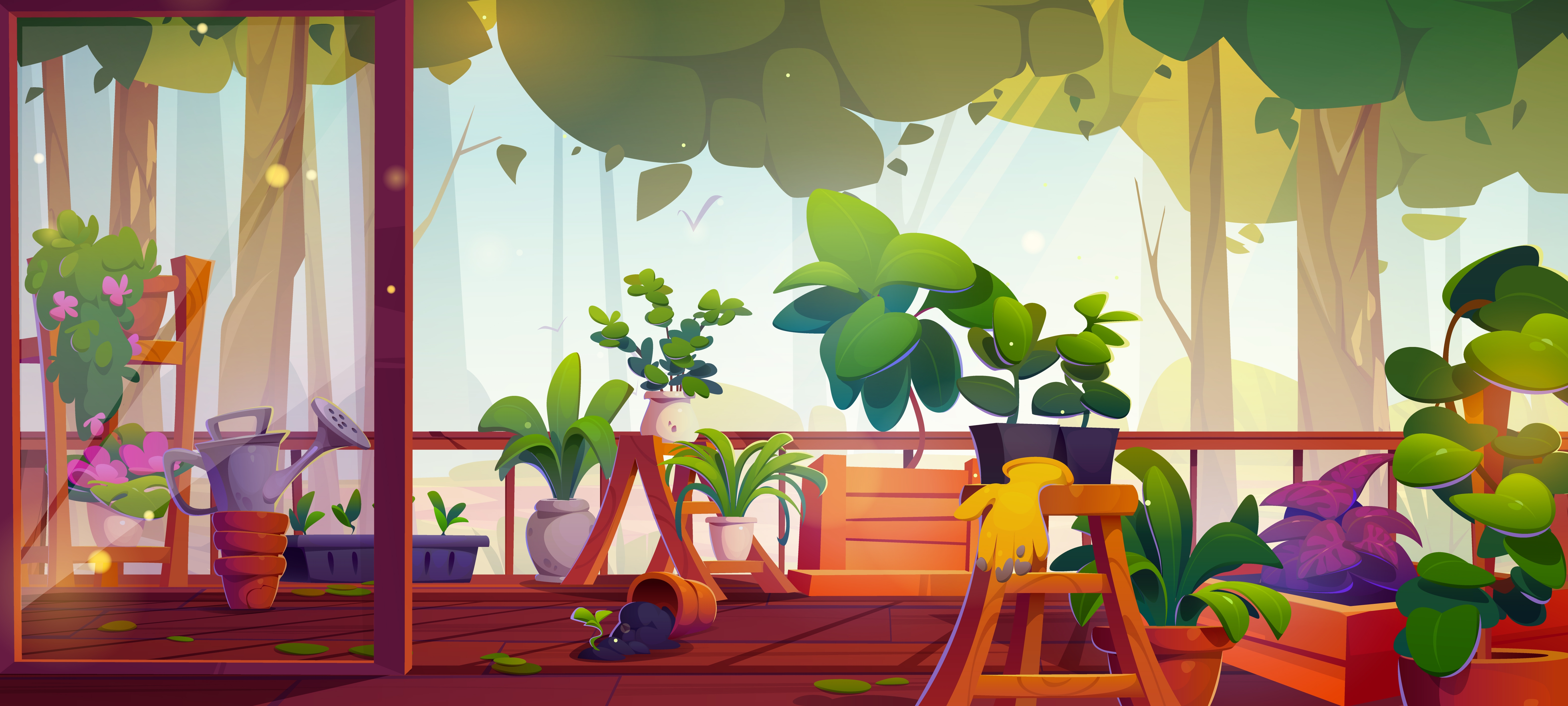 1 张 卡通夏日早晨露台花园 : 1013902