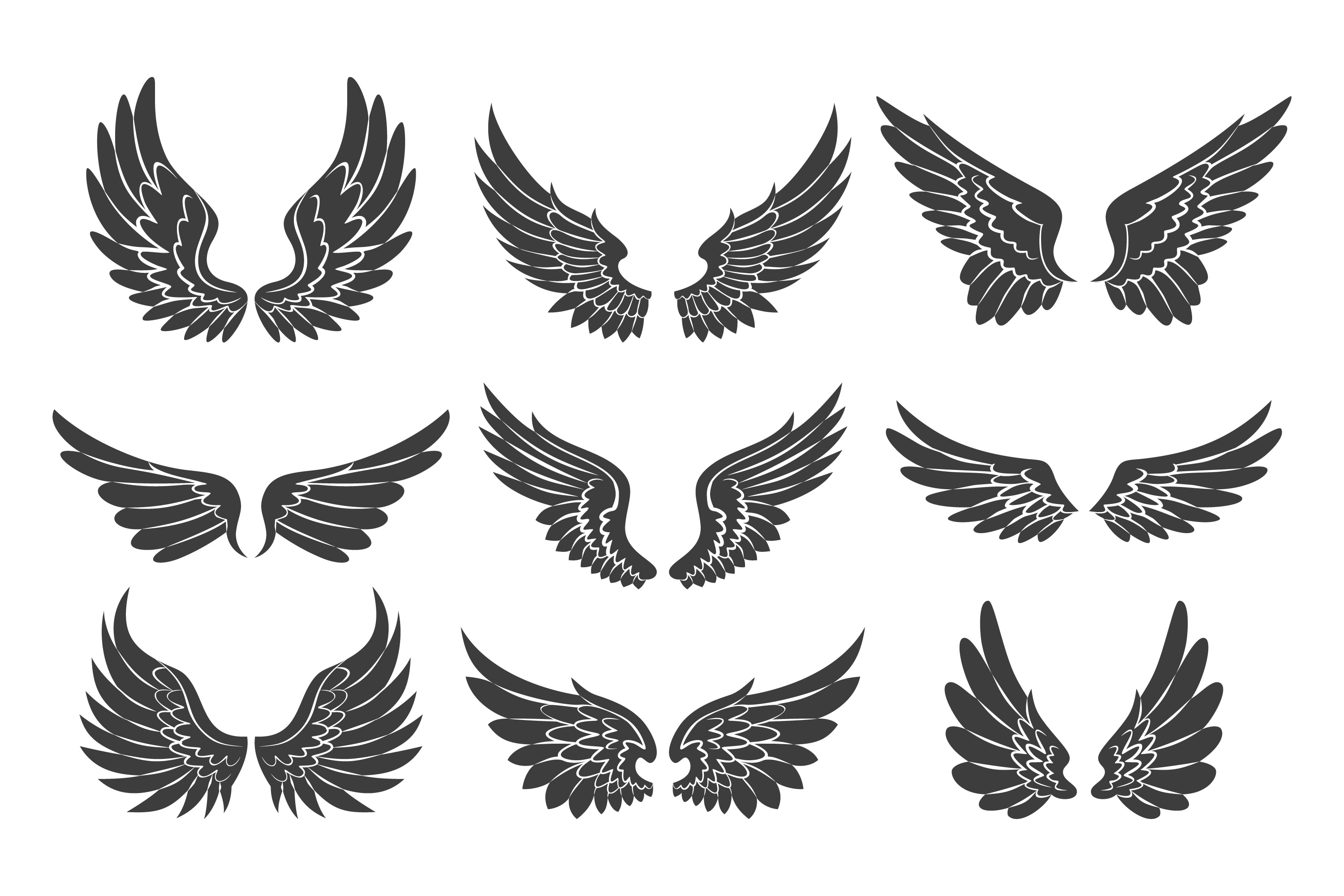 1 张 九款黑白翅膀展翅飞翼标志素材 : 1014881