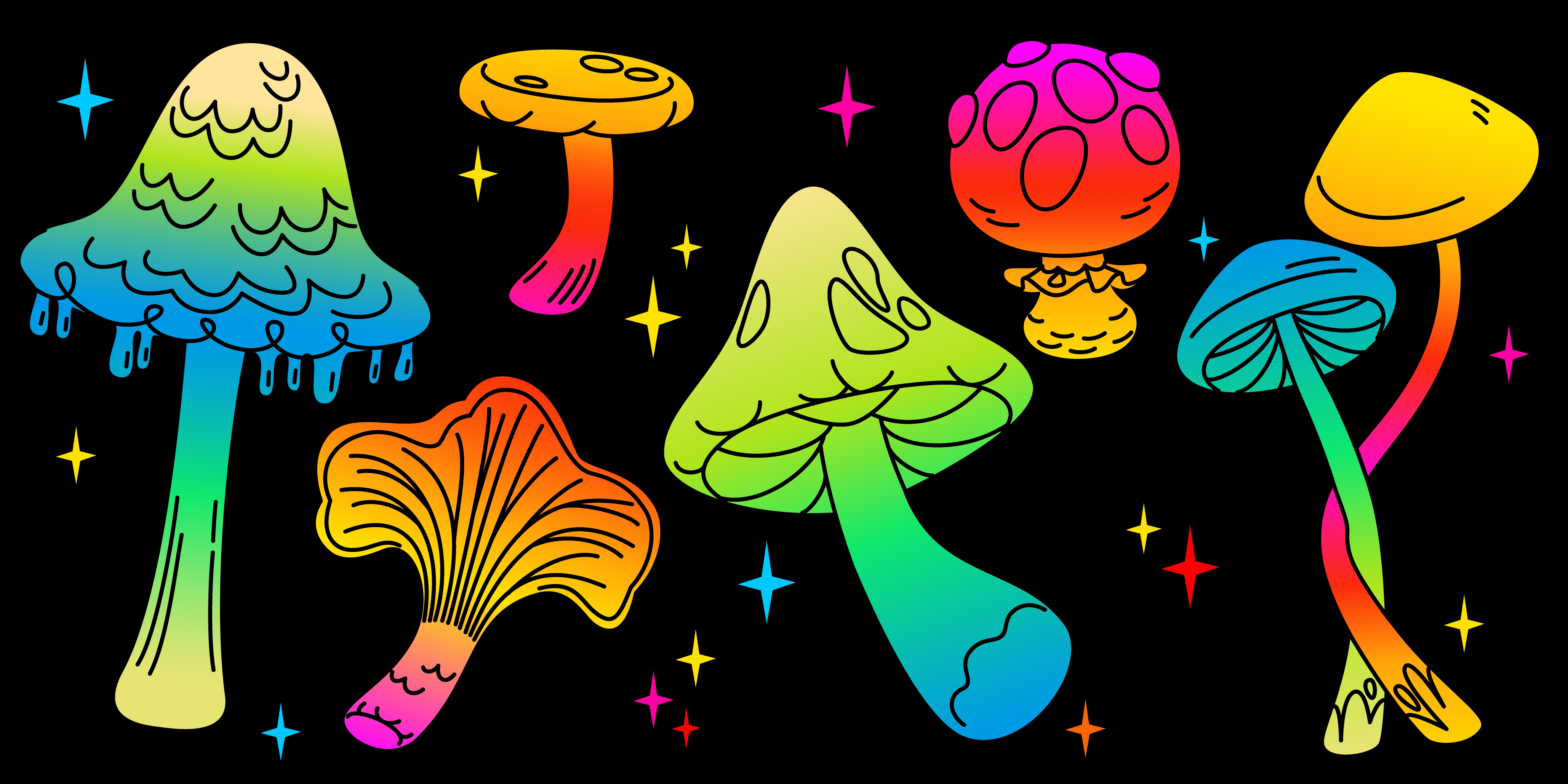 1 张 卡通彩色魔法蘑菇人物表情包矢量素材 : 1009164