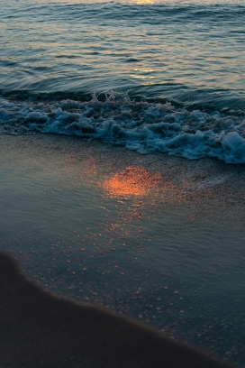 • 海岸暮色-落日熔金,海天一色的自然画卷