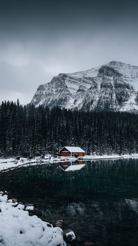 1 张 雪山湖泊旁的小屋 731