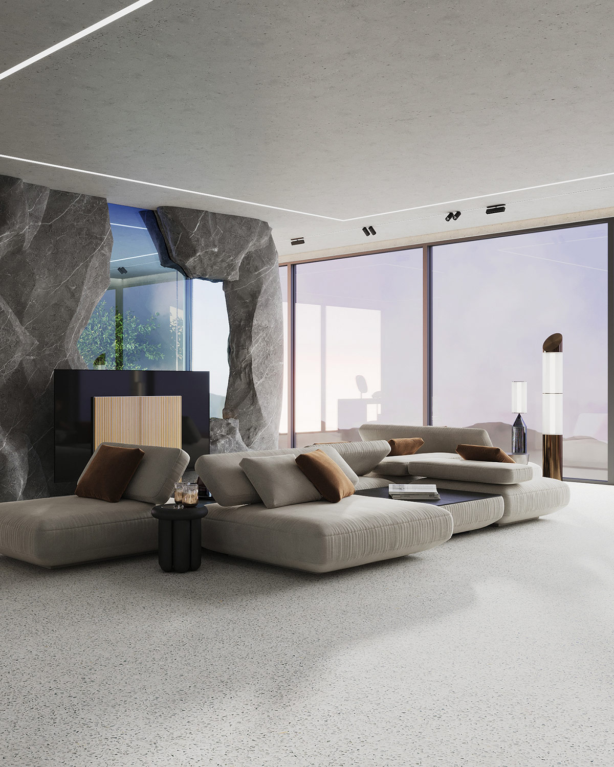 26 张 宁静的极简主义与有机奢华:来自波兰和沙特阿拉伯的2套现代中性内饰