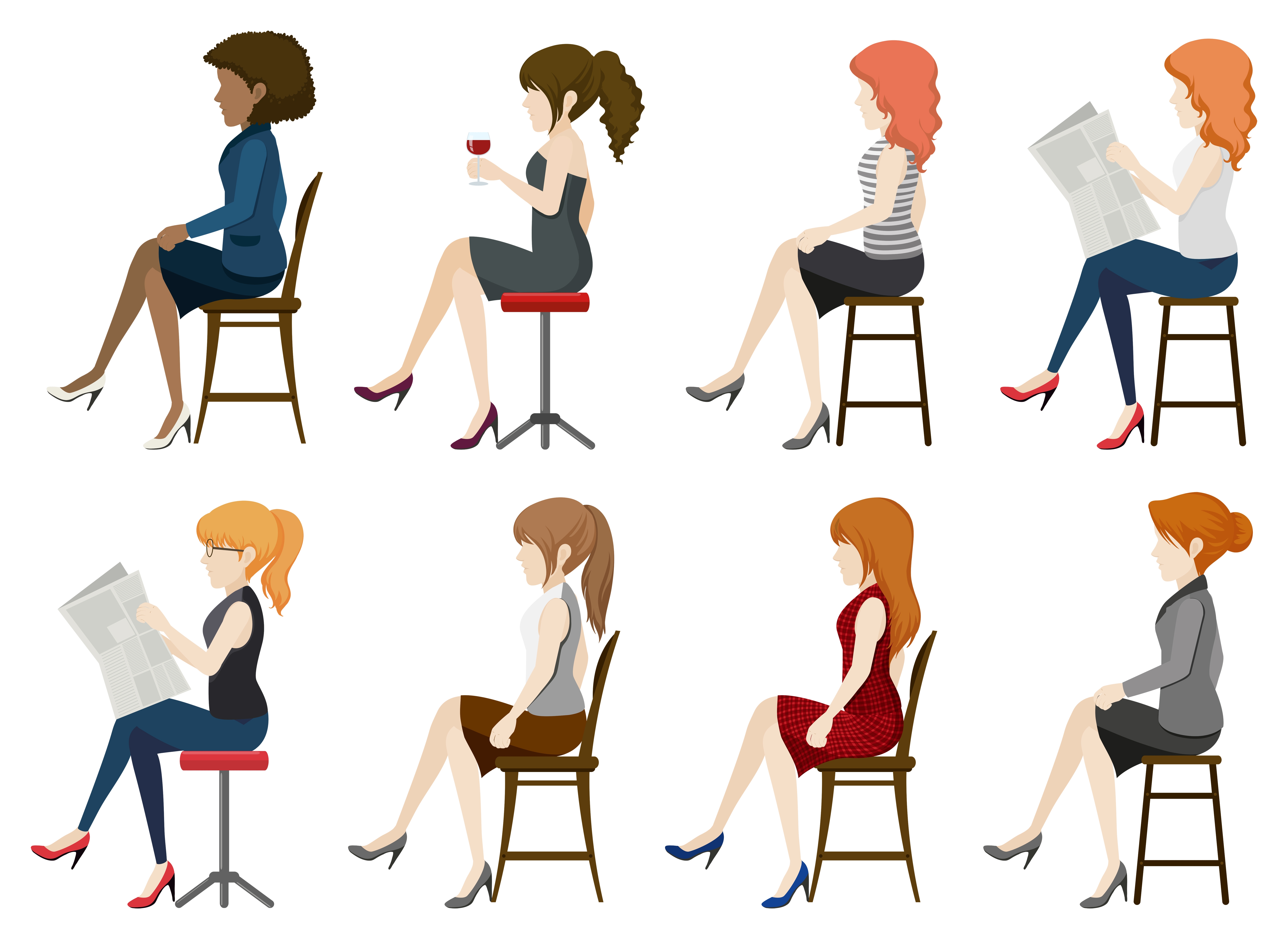 1 张 卡通坐在凳子上侧面照的女性素材